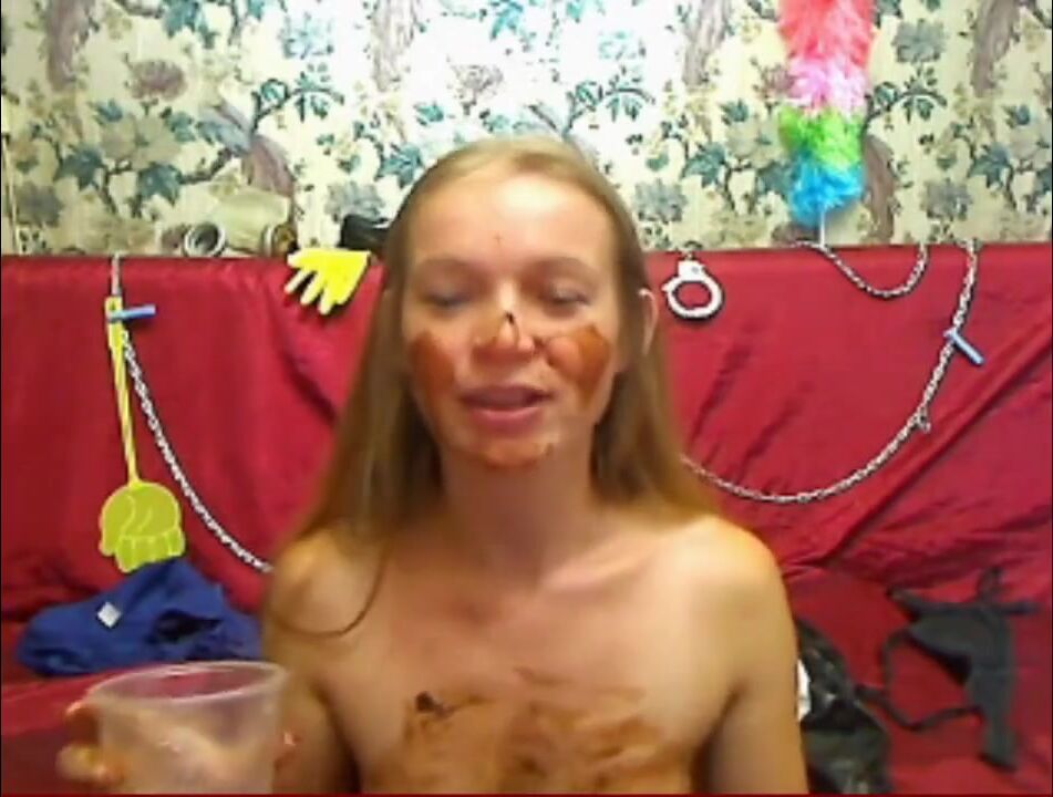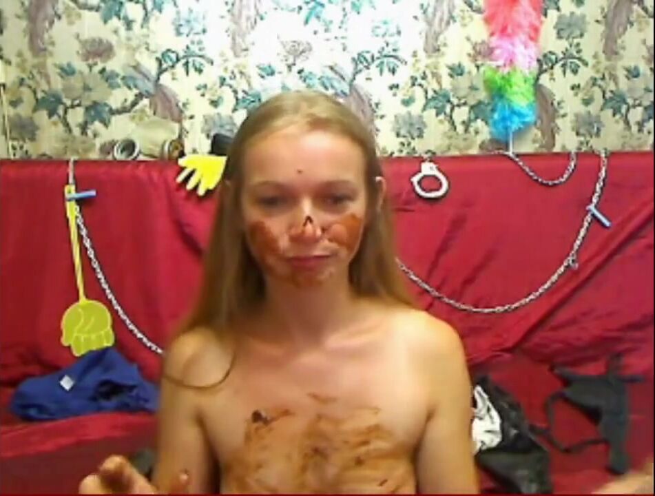Hot girl pissing, shitting, and smearing on webcam