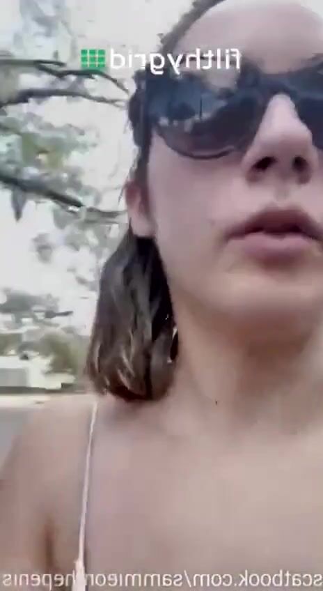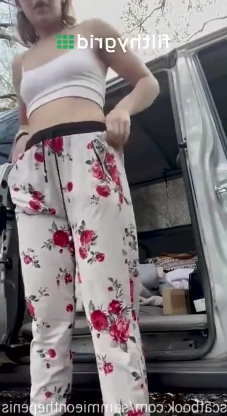 Womsn pooping outside public in nature