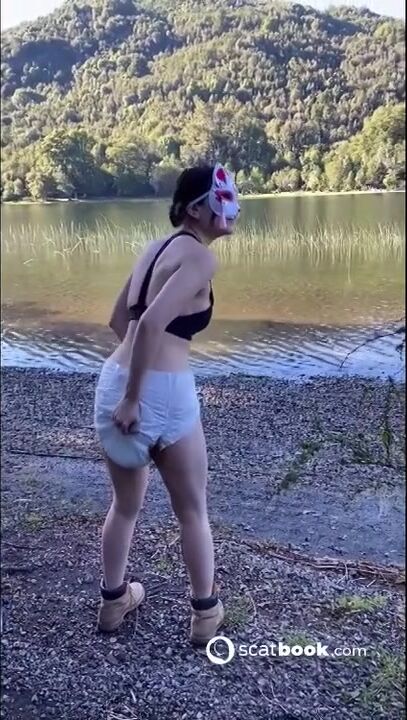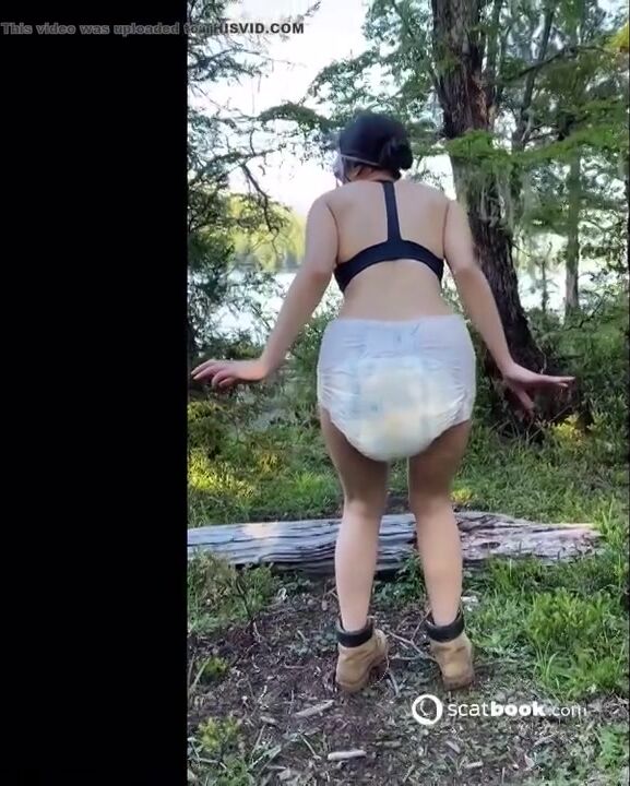 CWD releases runny shit in diaper while in woods.