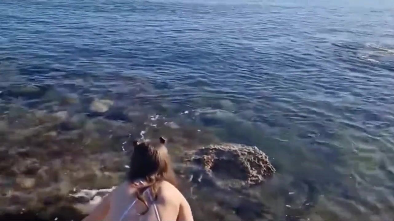 girl shitting her bathing suit at the beach