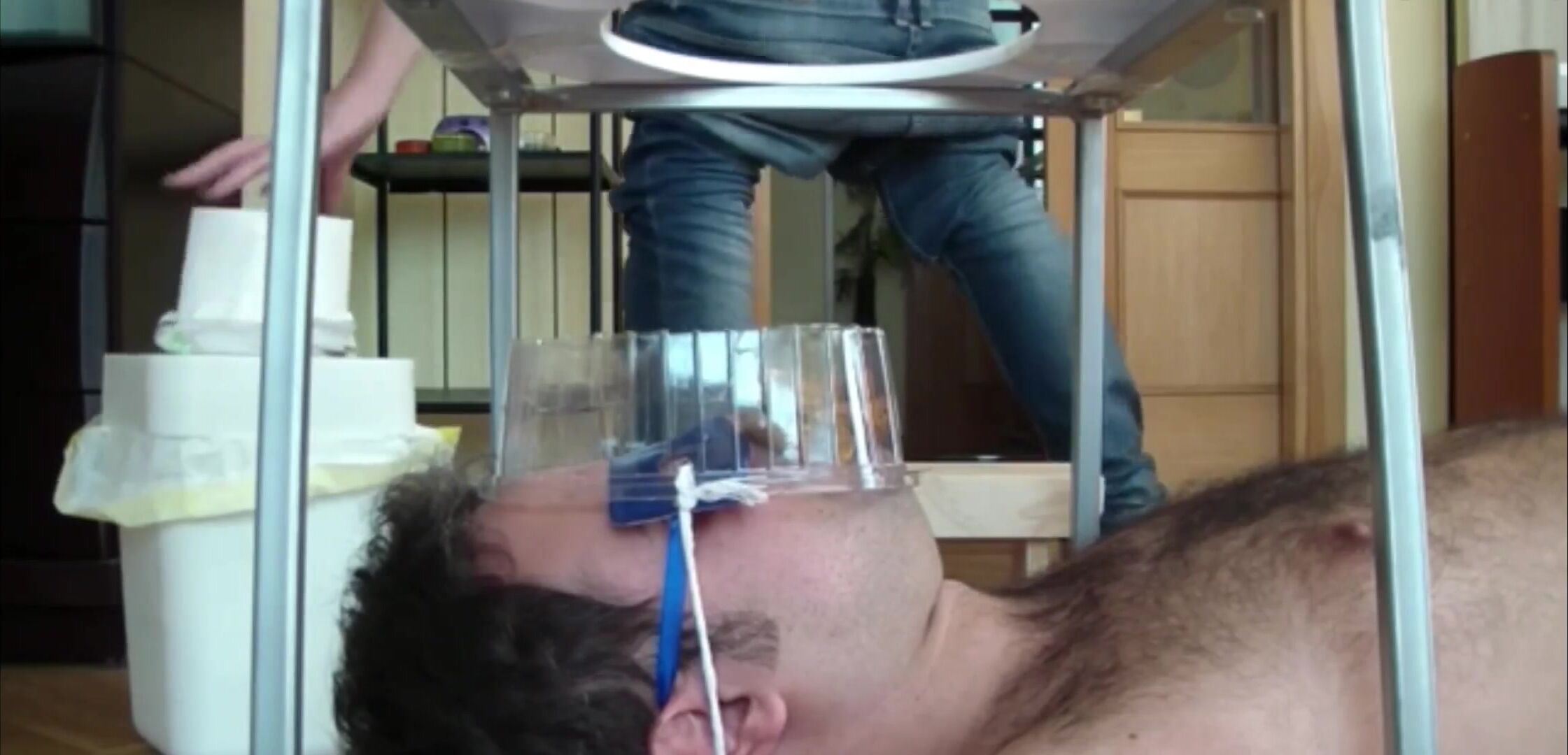 asian shitting in a jar