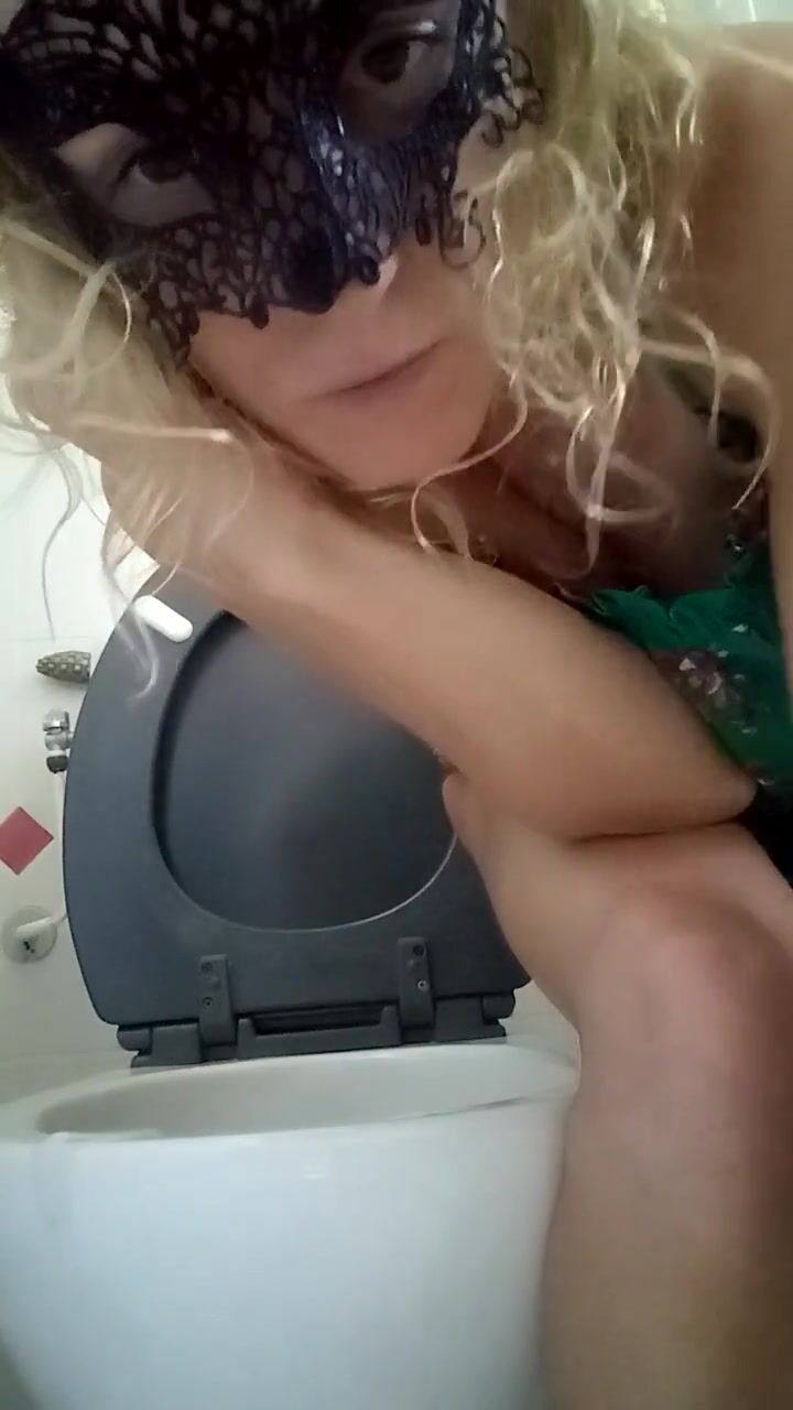 Blonde woman in dress defecates