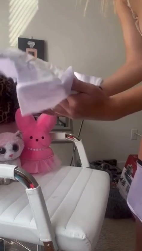 Woman pooping on diaper placed on chair