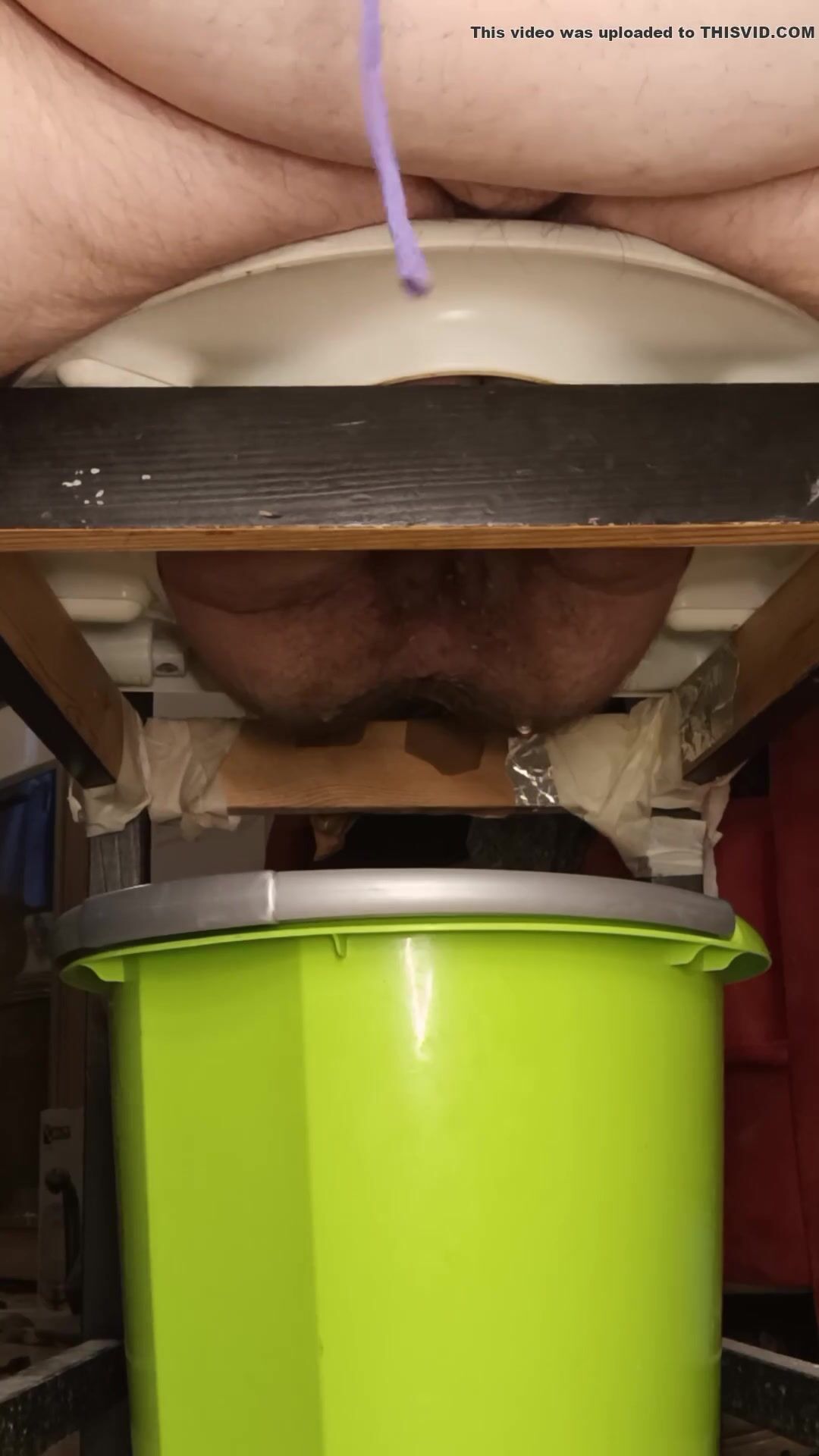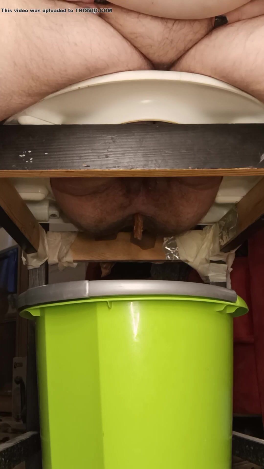 Dirty girl ride a big dildo and shit on it