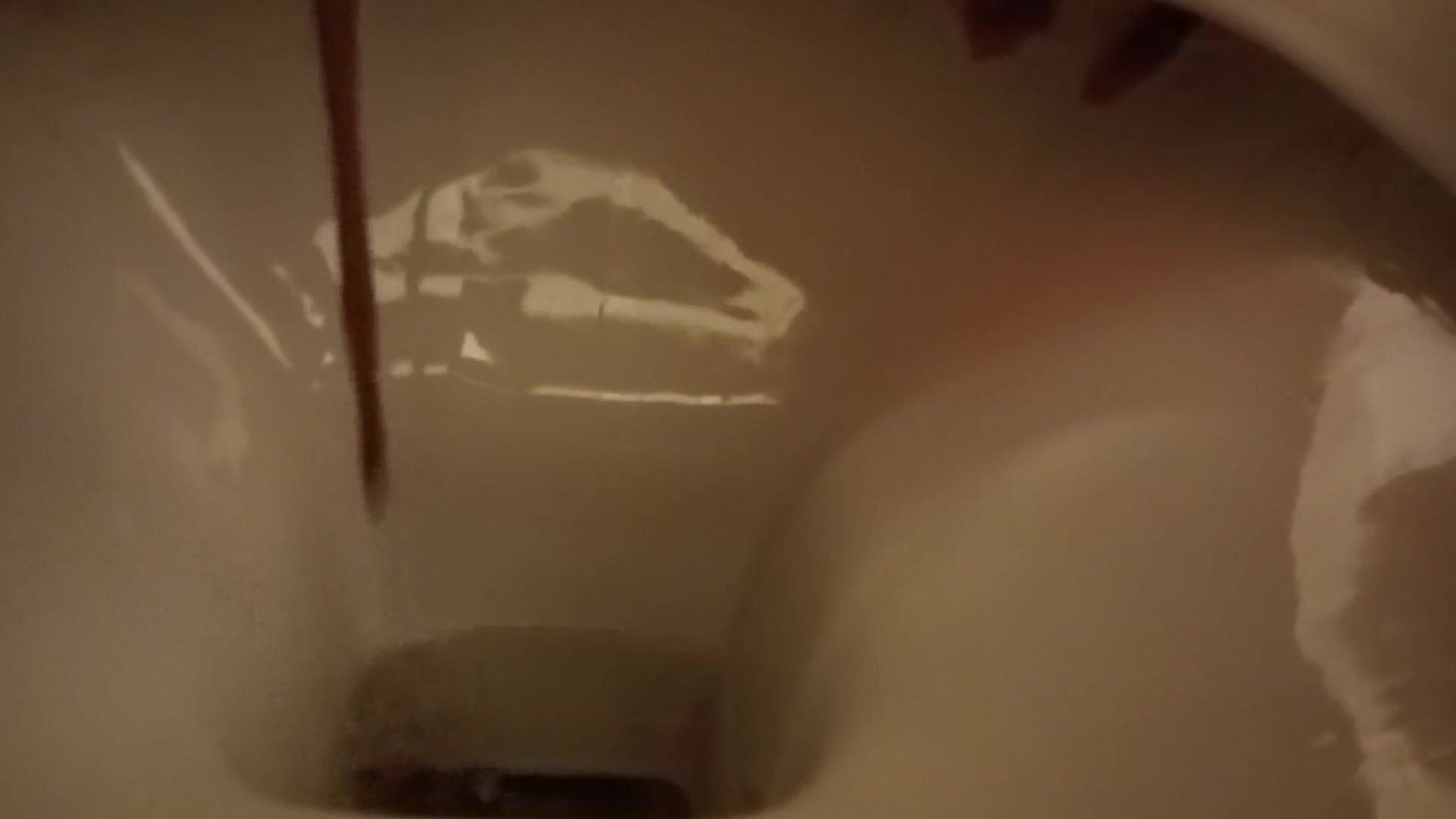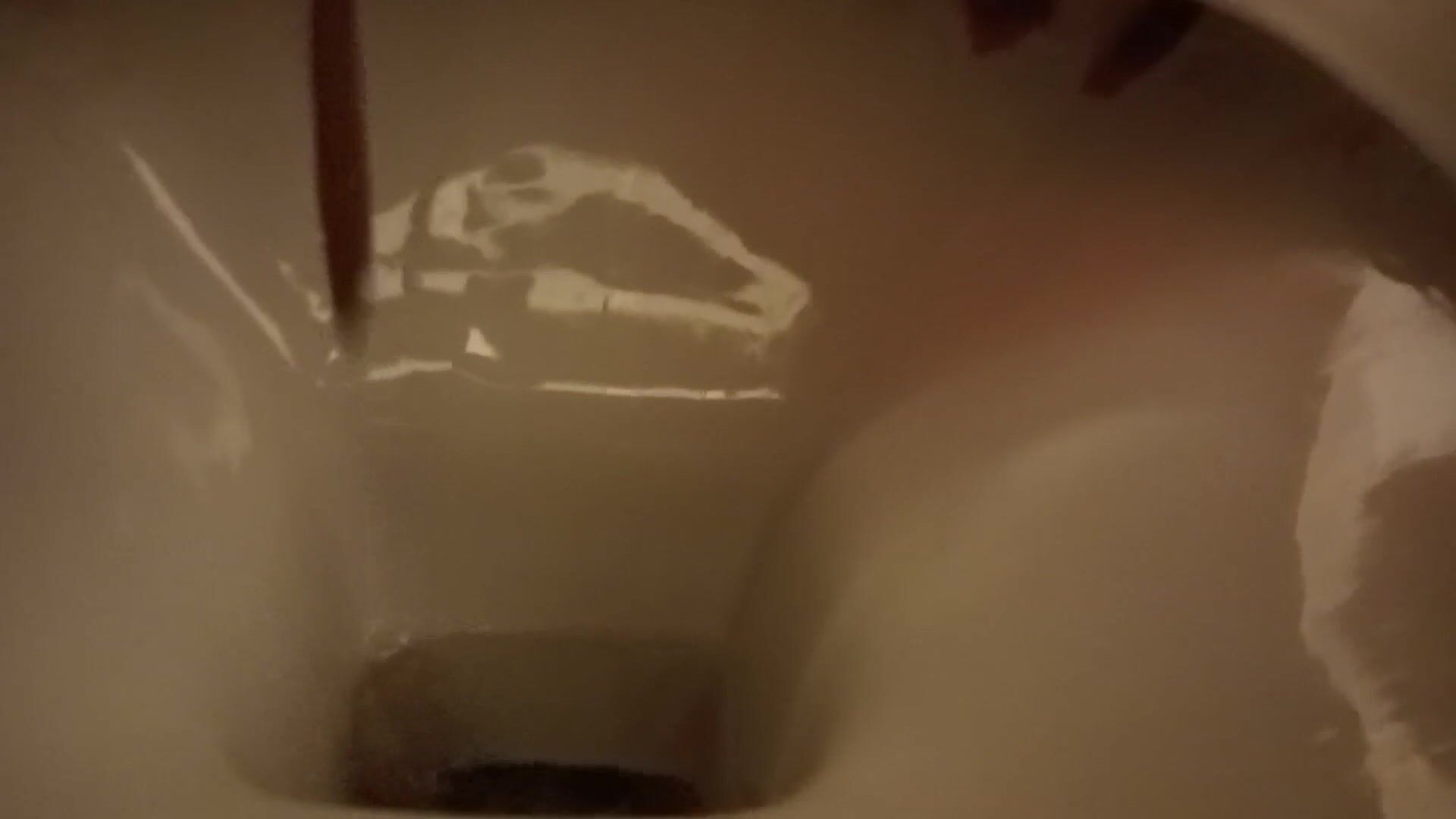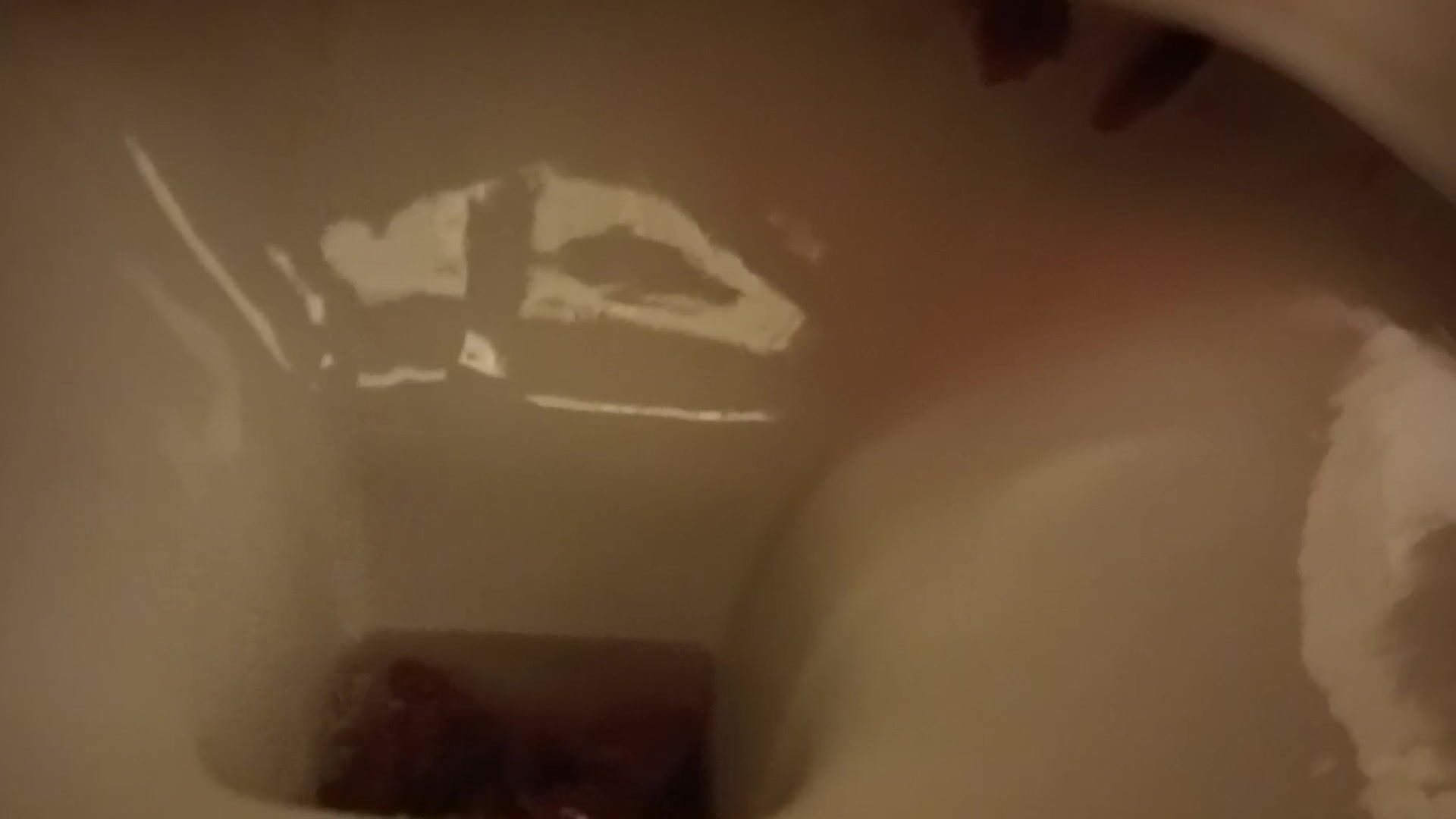 Girl open wide legs and shitting on the toilet floor