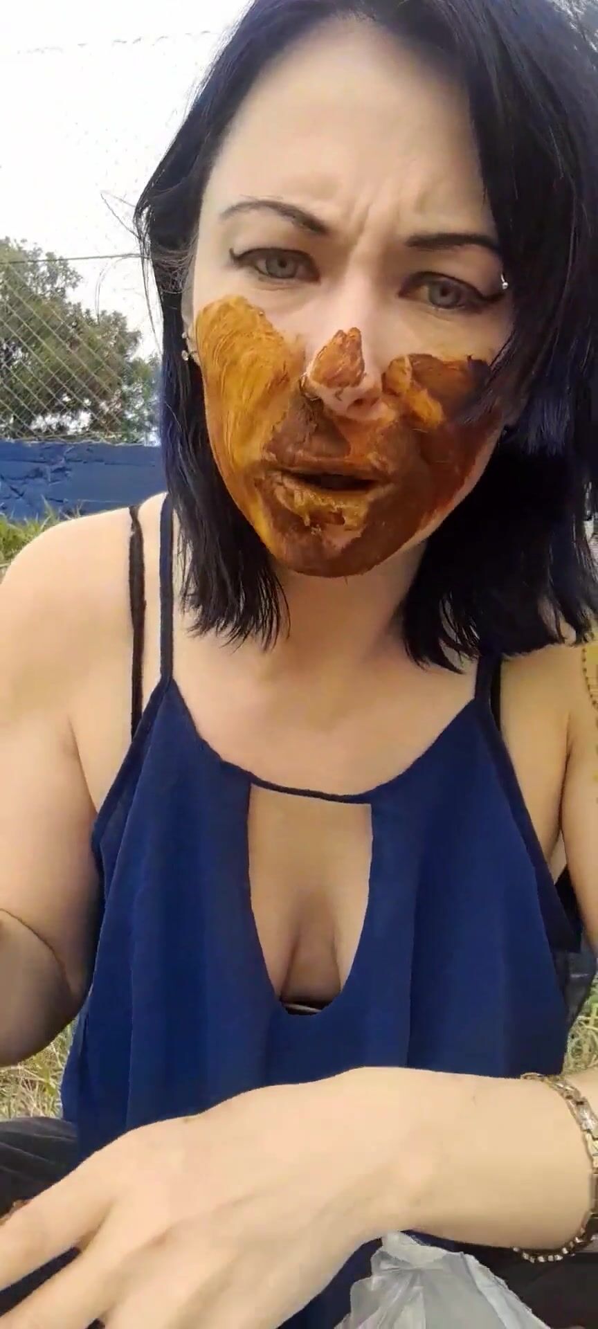 Woman eat dog shit