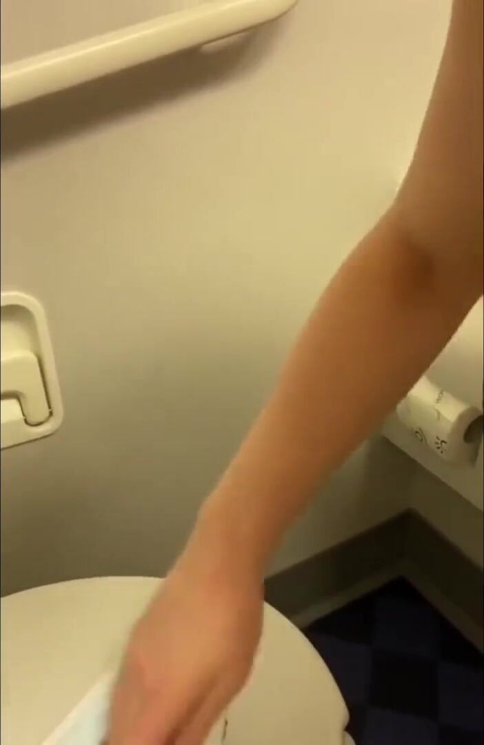 Girl shits on airplane toilet seat and pisses on sink
