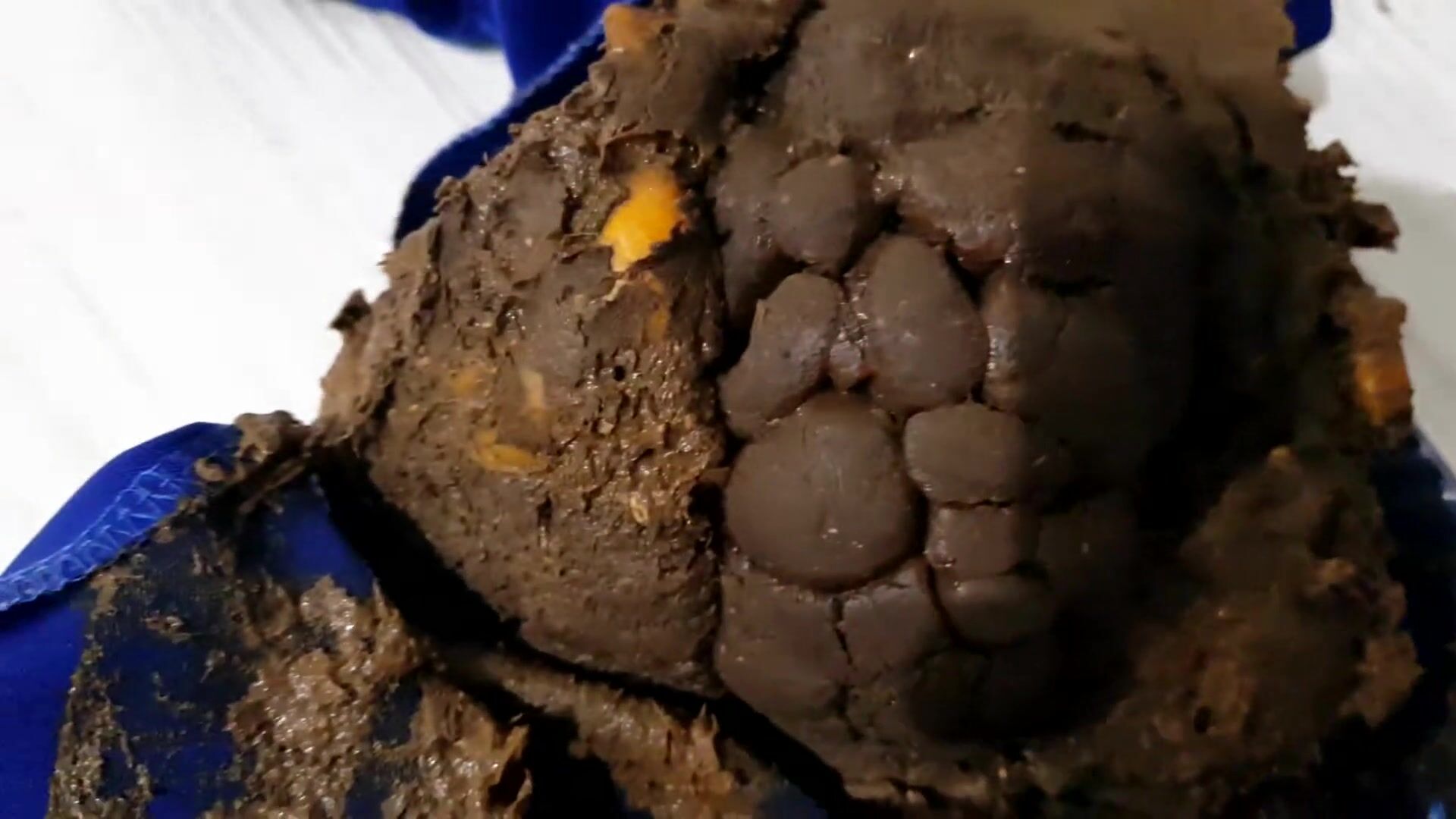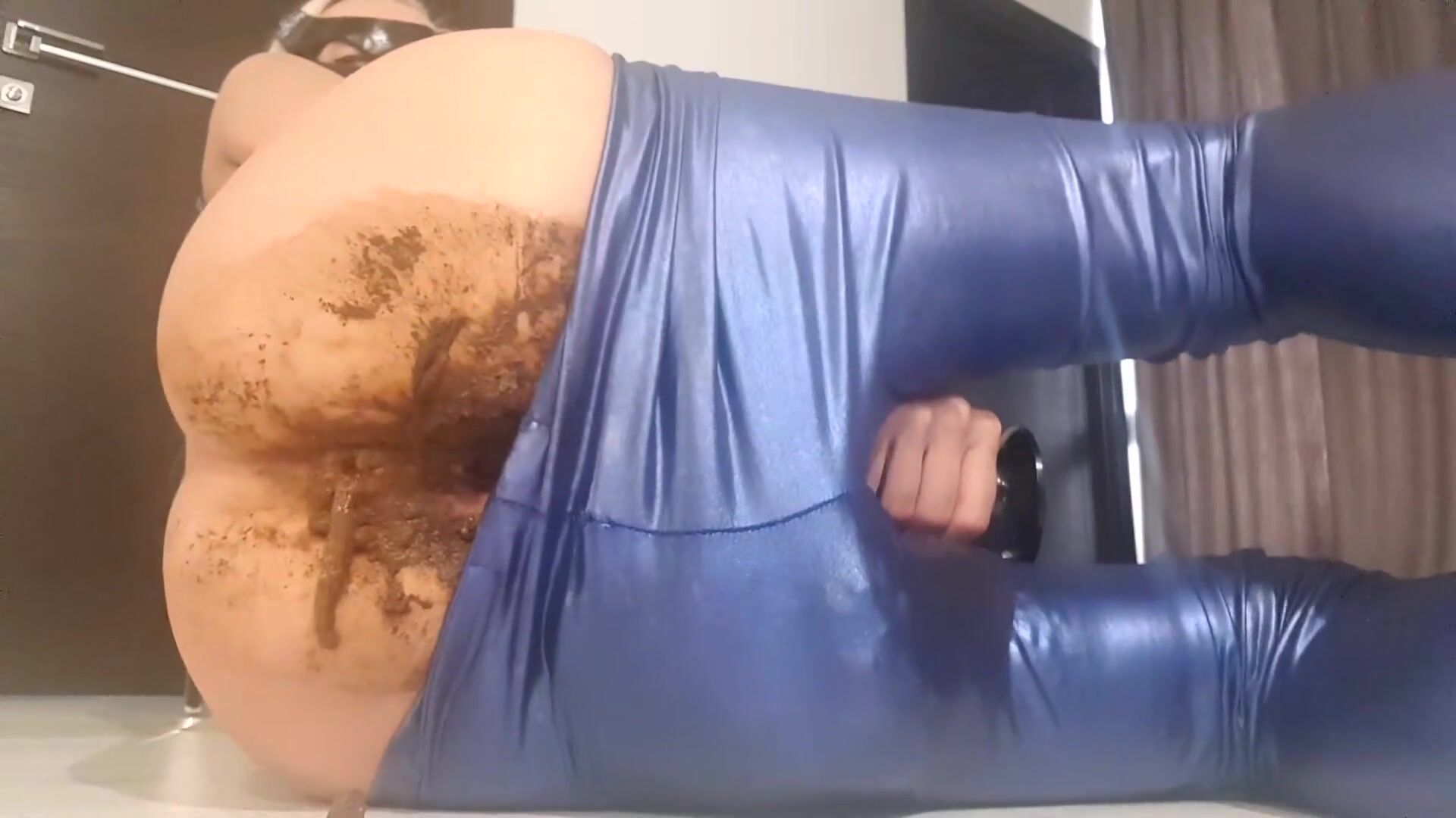 Big poop and masturbation in shiny blue pants