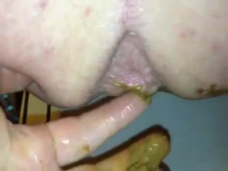 Fingering her ass while she's pooping