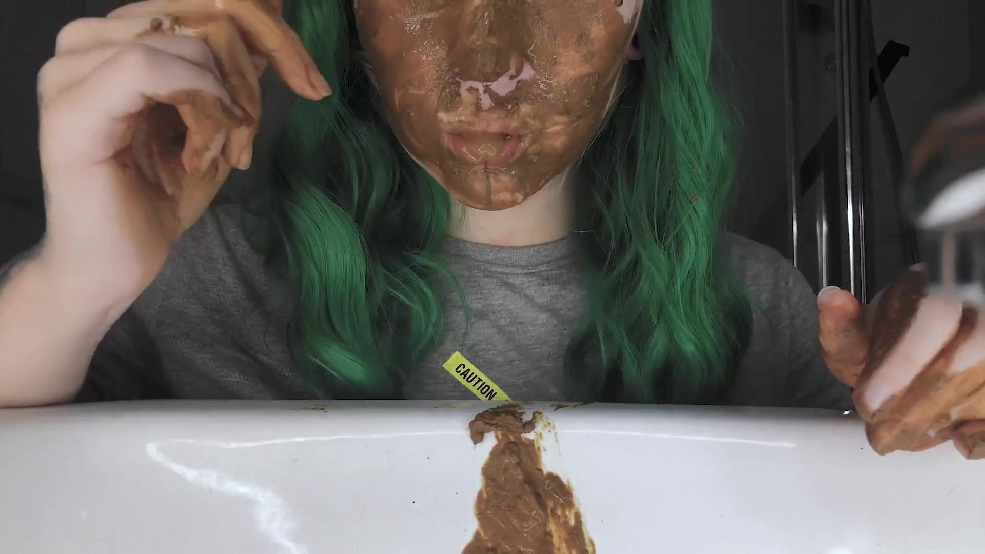 Fat ass shit in sink and spread
