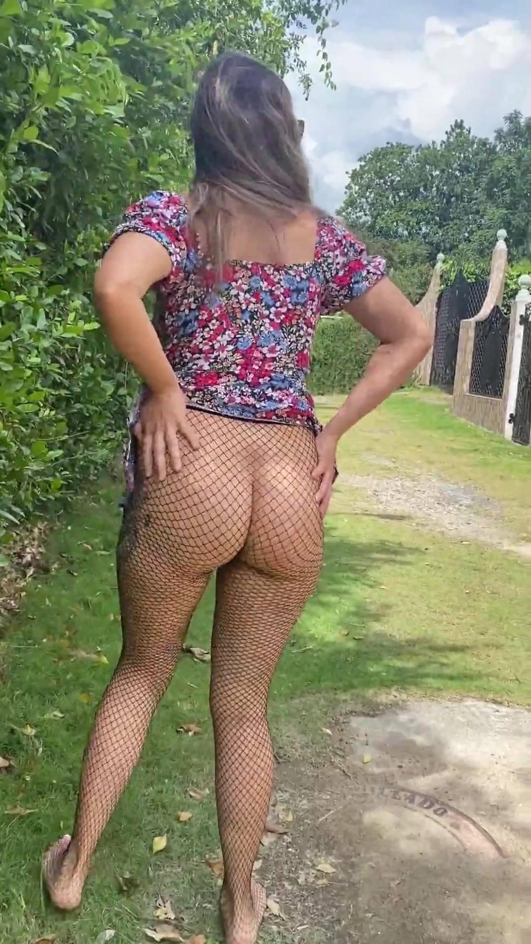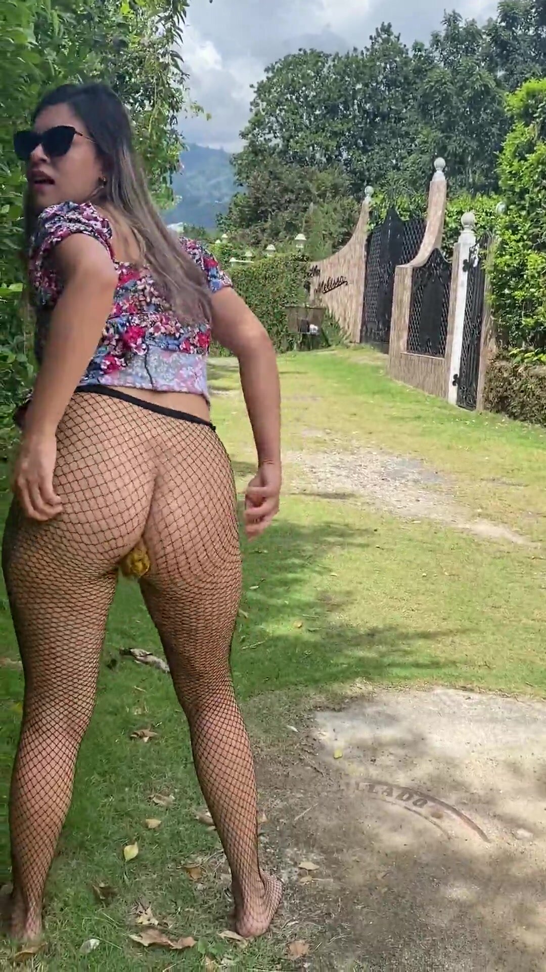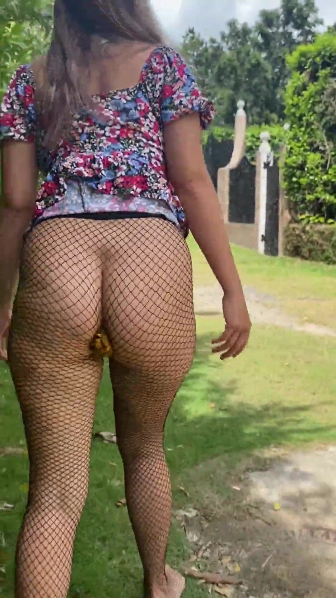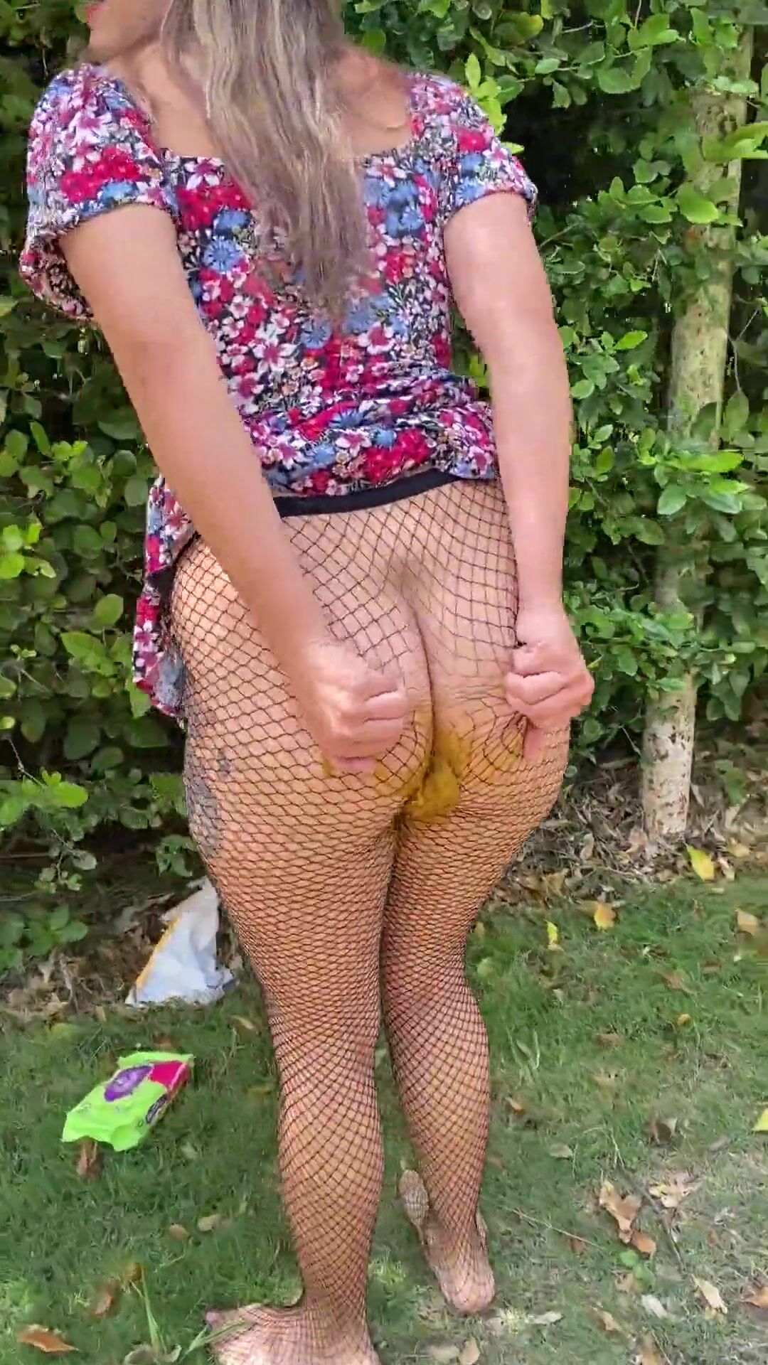 Fishnet scat outdoors
