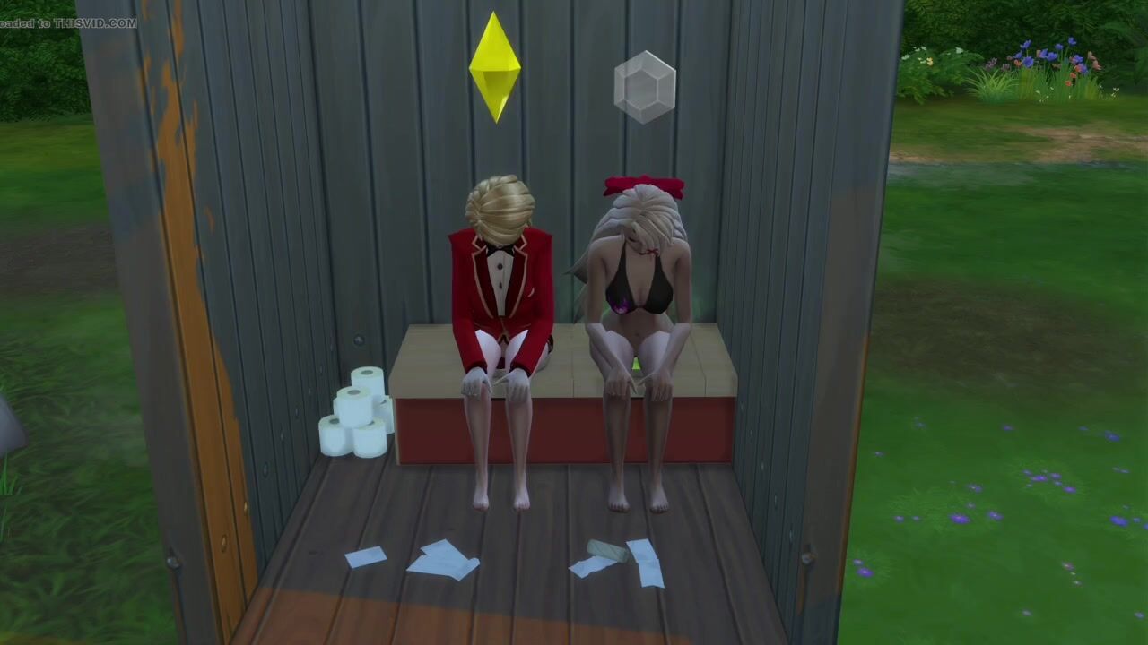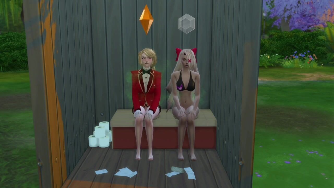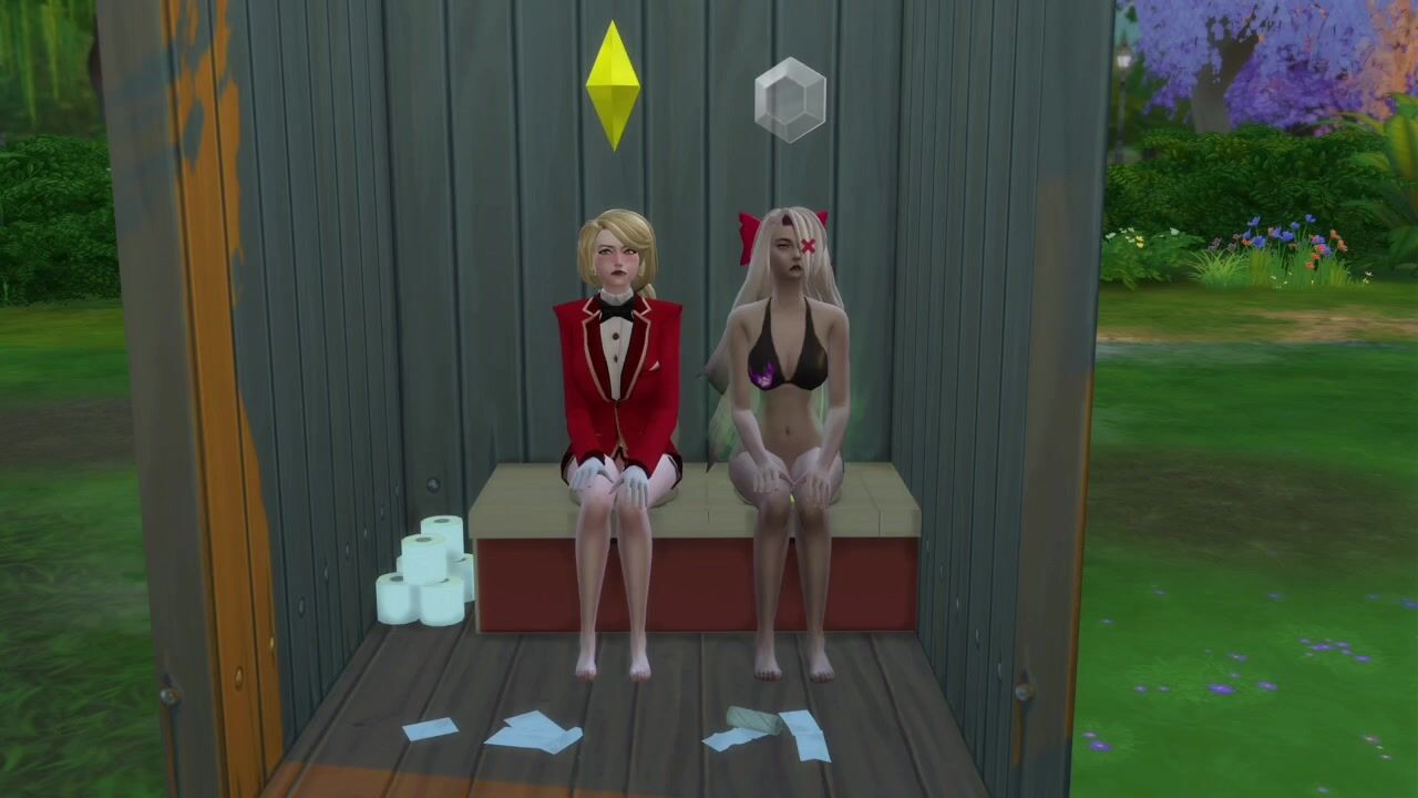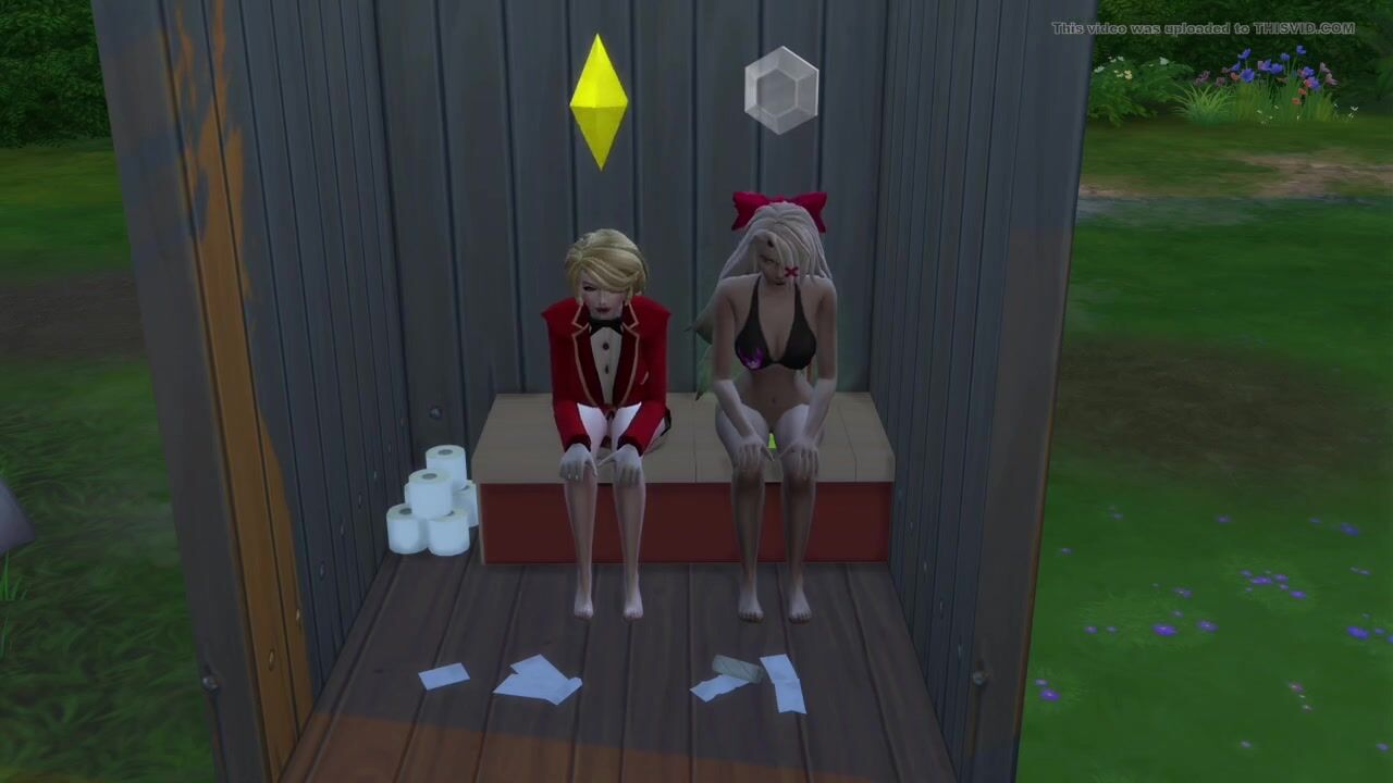 Charlie and Vaggie take a dump in a outhouse