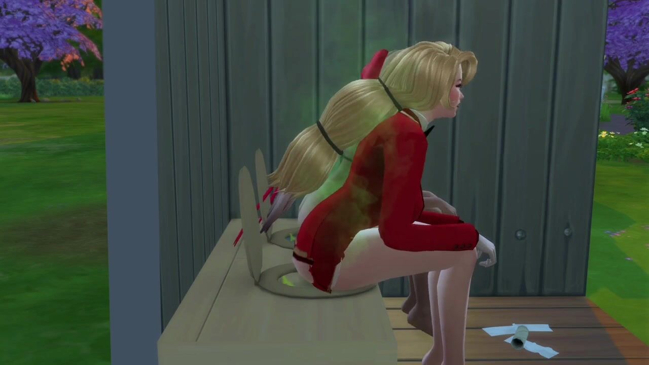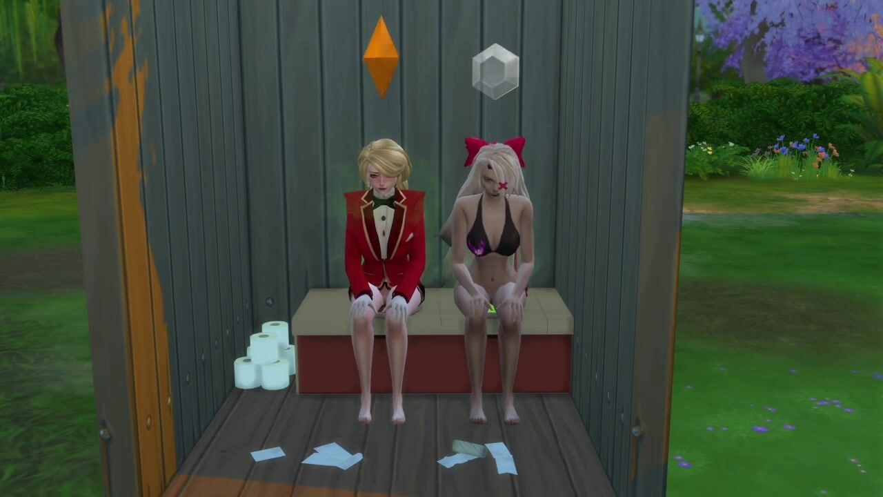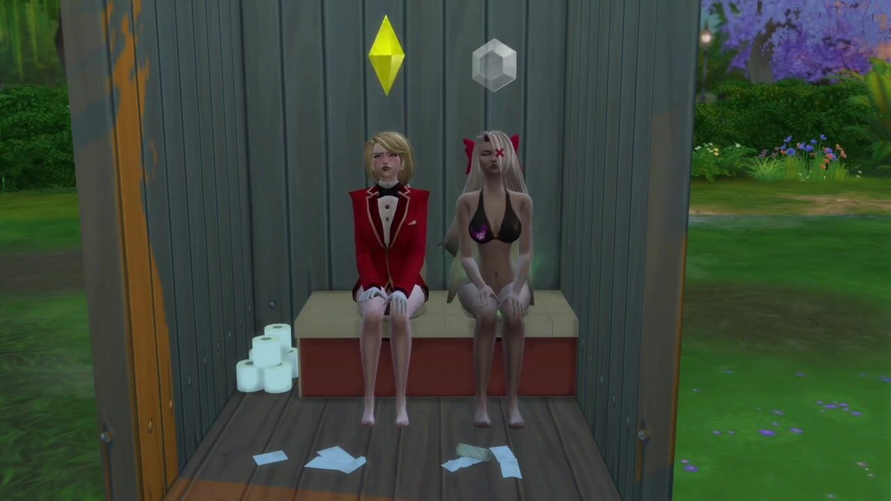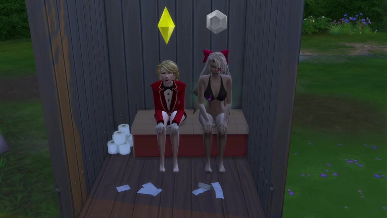 Charlie and Vaggie take a dump in a outhouse