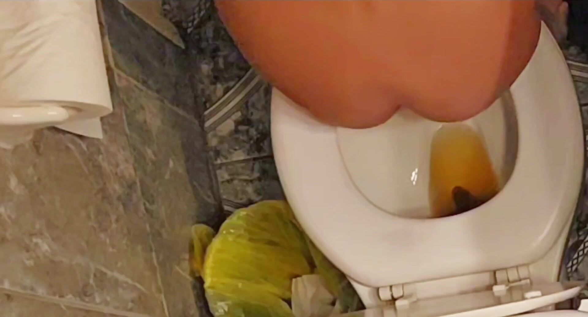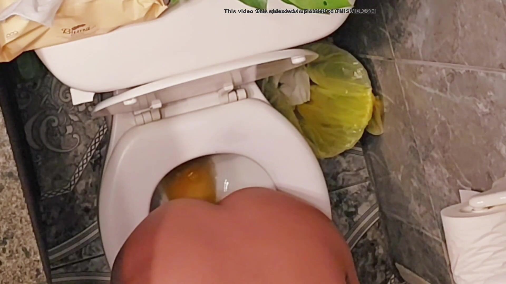 Girl takes a ploppy poop on toilet - video 2