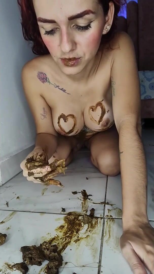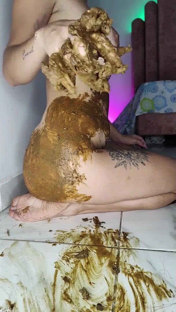 Girl shitting in the shower and smering it on body