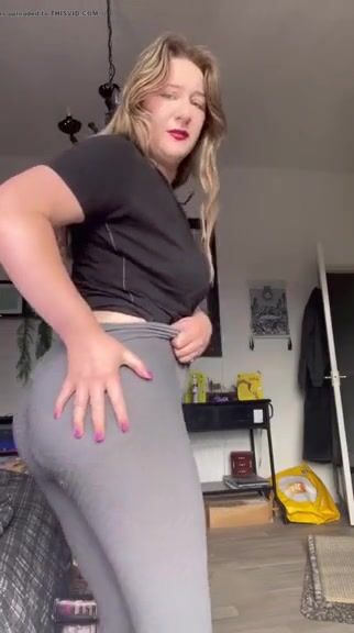 Mature chubby blonde shitting in her leggins,