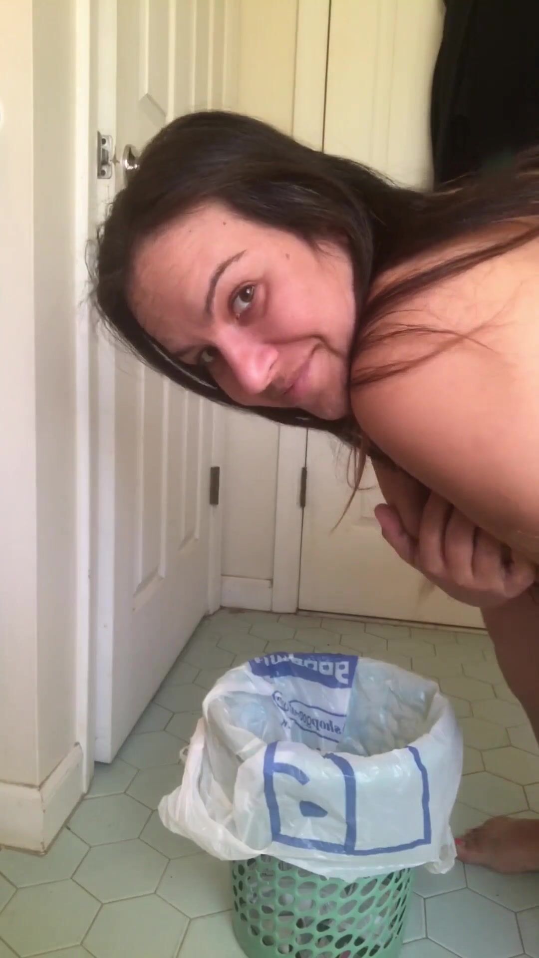 shits in the trash can