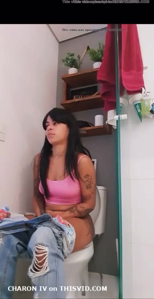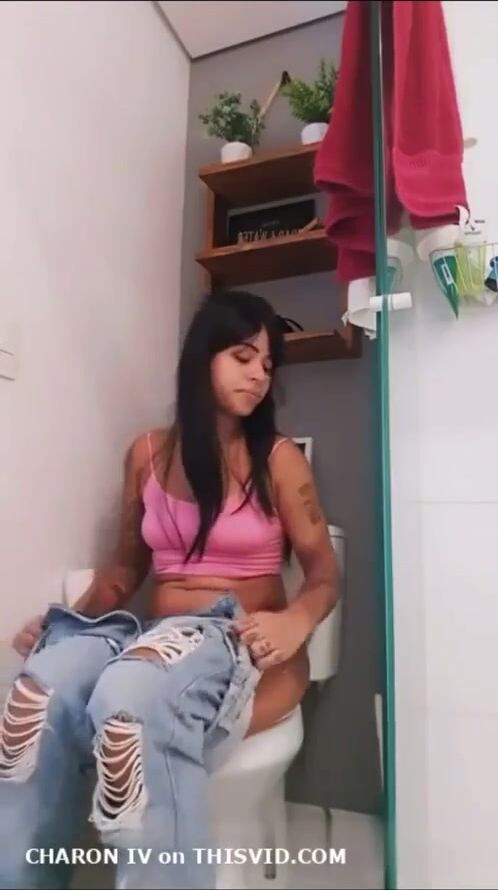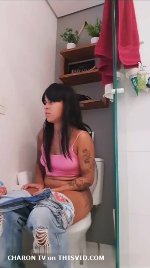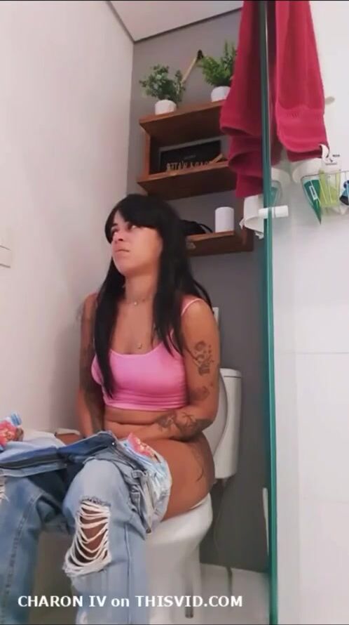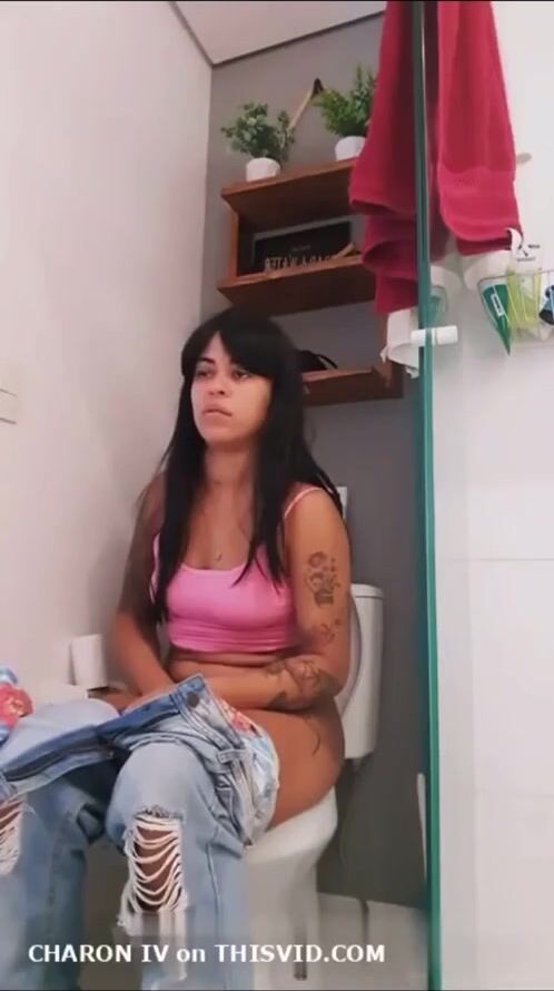 Sexy Brazilian girl farting on toilet