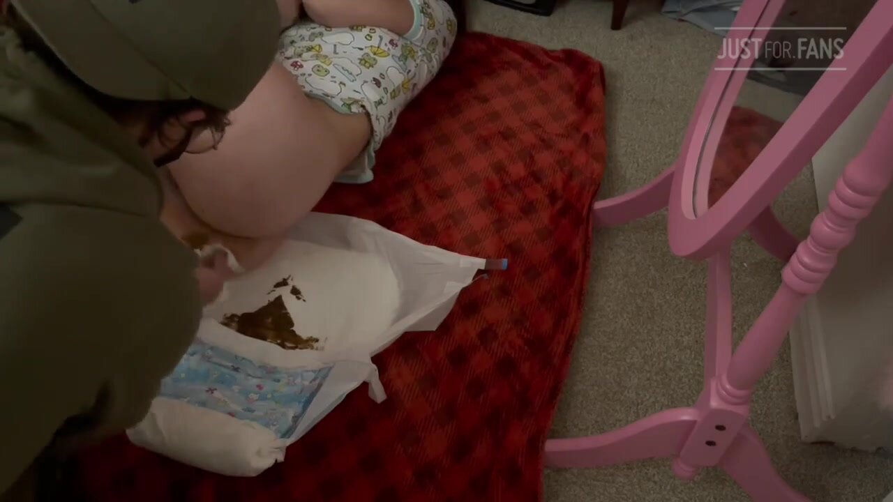Messing her diaper and changed by her daddy,,