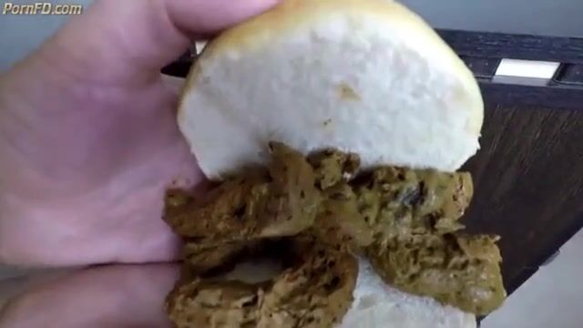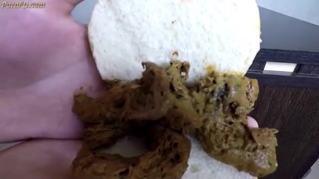 Slave eats scat sandwich from mistress