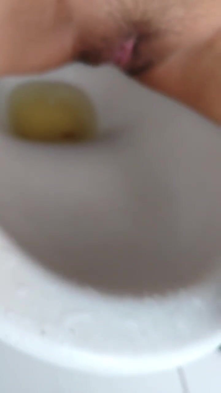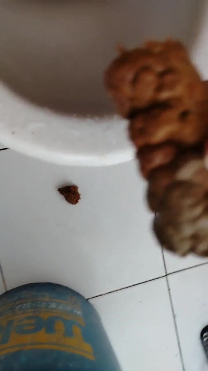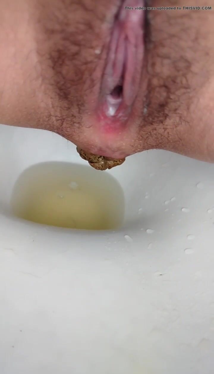 Girl open wide legs and shitting on the toilet floor