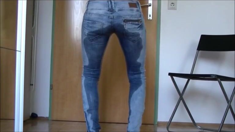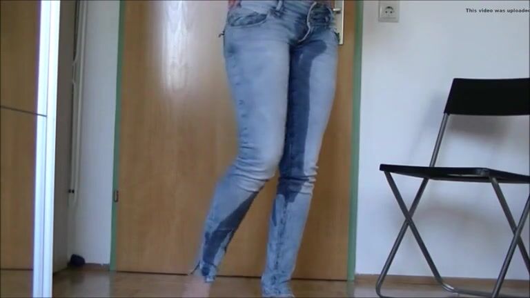Brunette wearing jeans and shitting hard logs