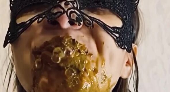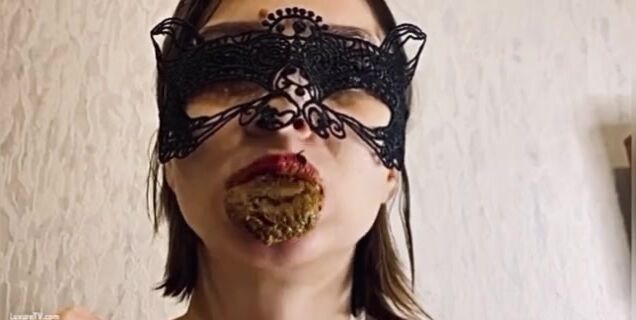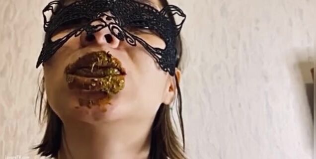 Hermosa mujer devorando su mierda