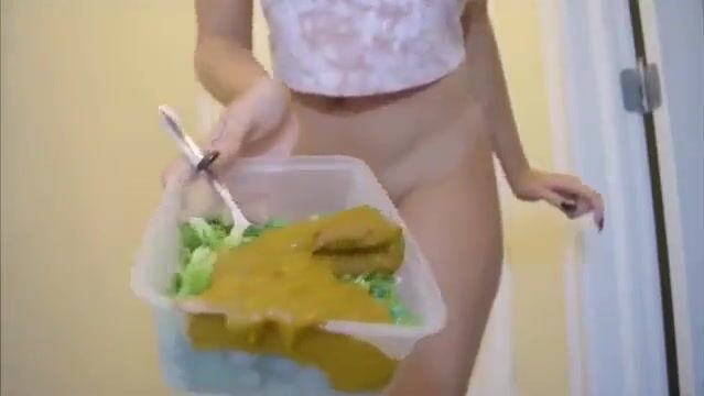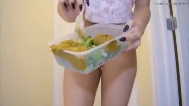 Girl creamy shit on the salad