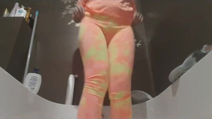 Poop into colorful leggins