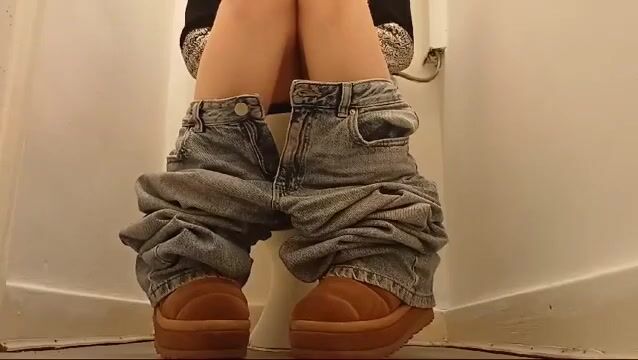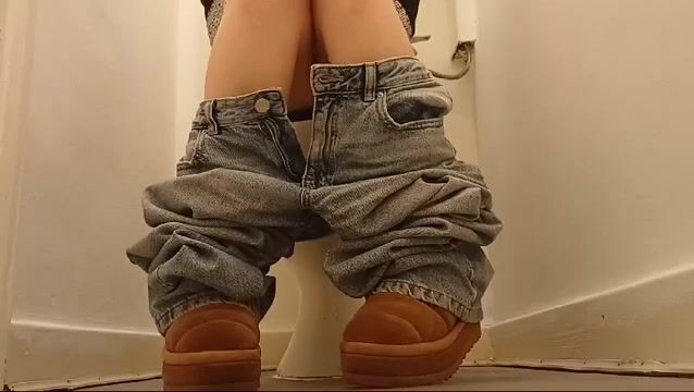 Girl open wide legs and shitting on the toilet floor