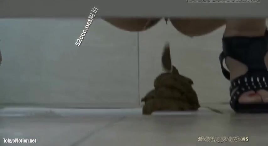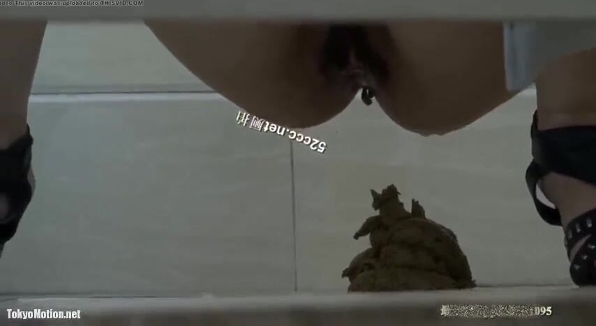 Girl open wide legs and shitting on the toilet floor