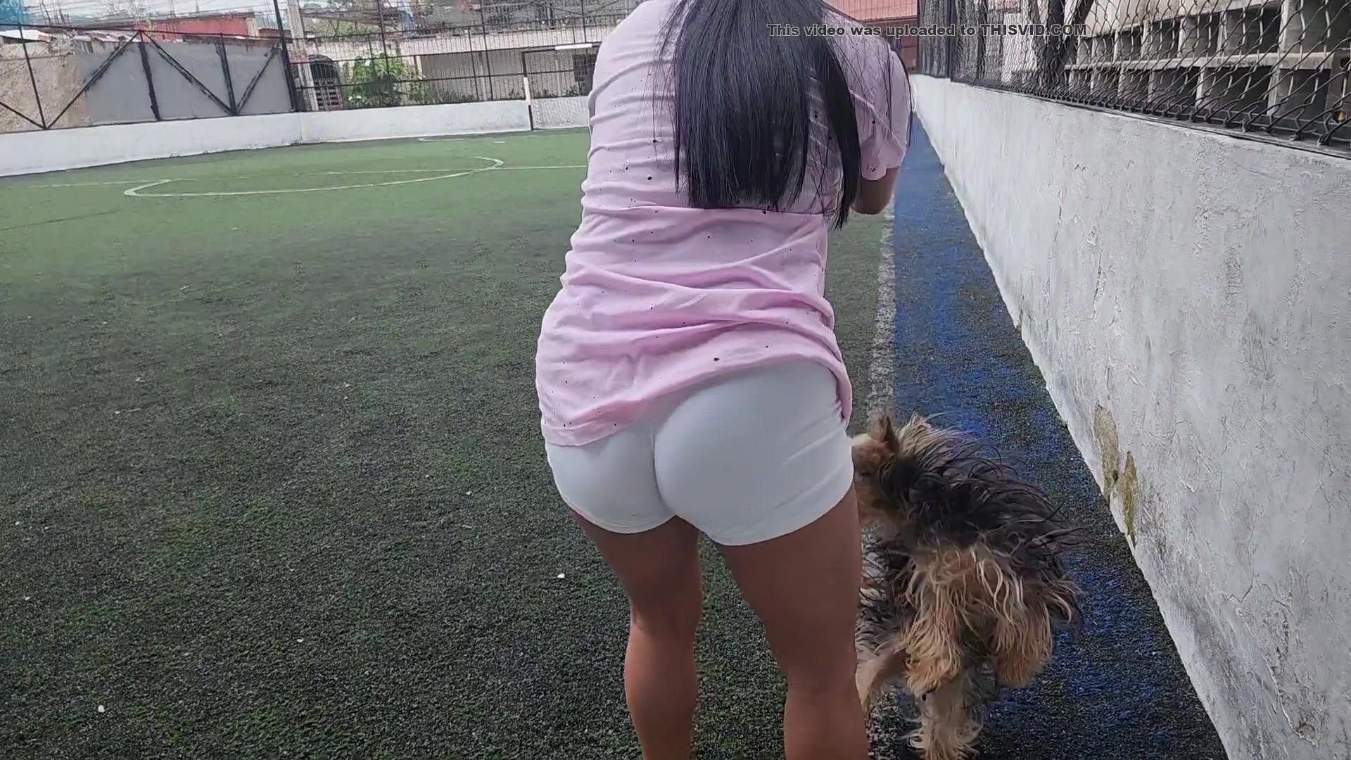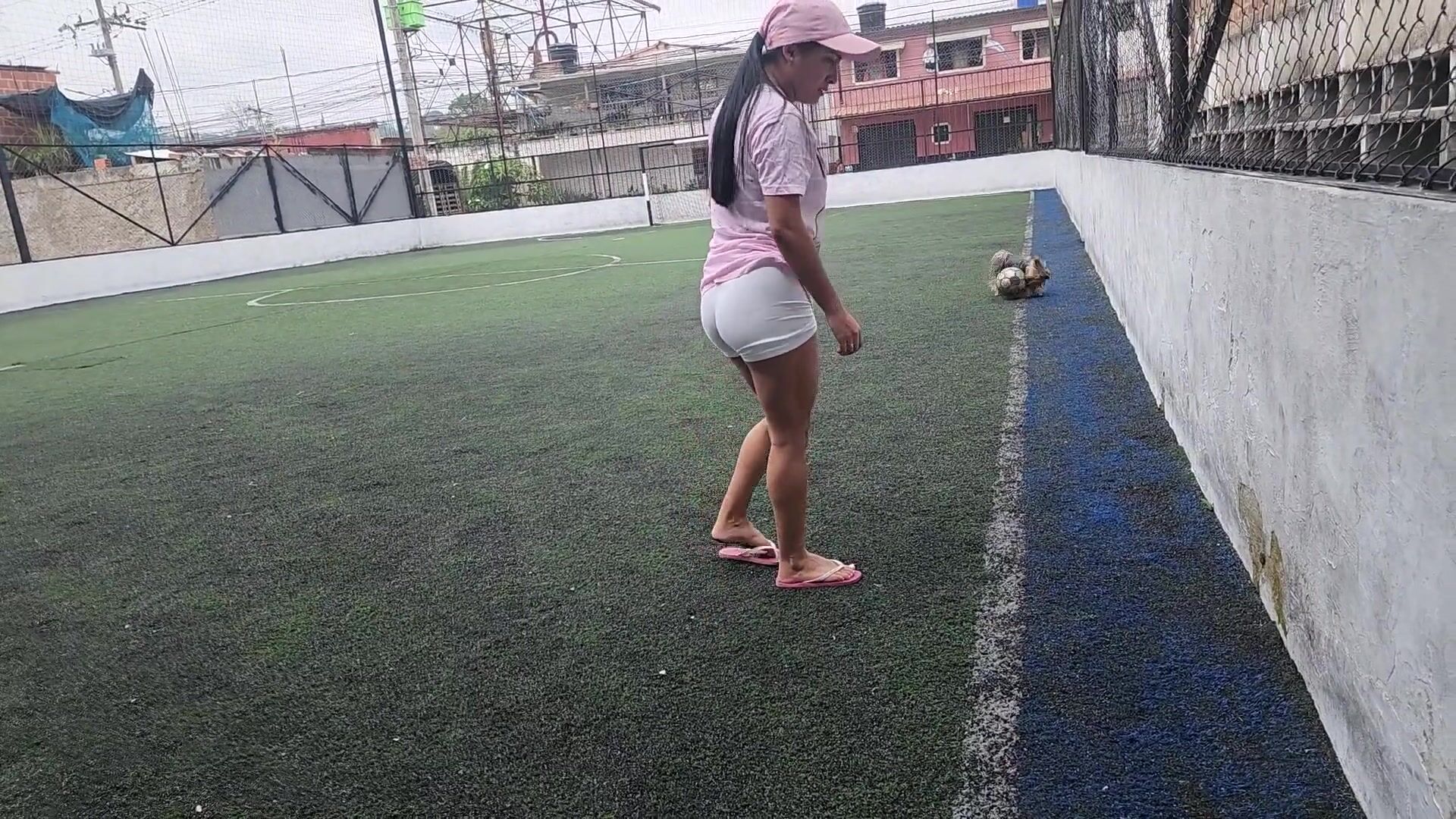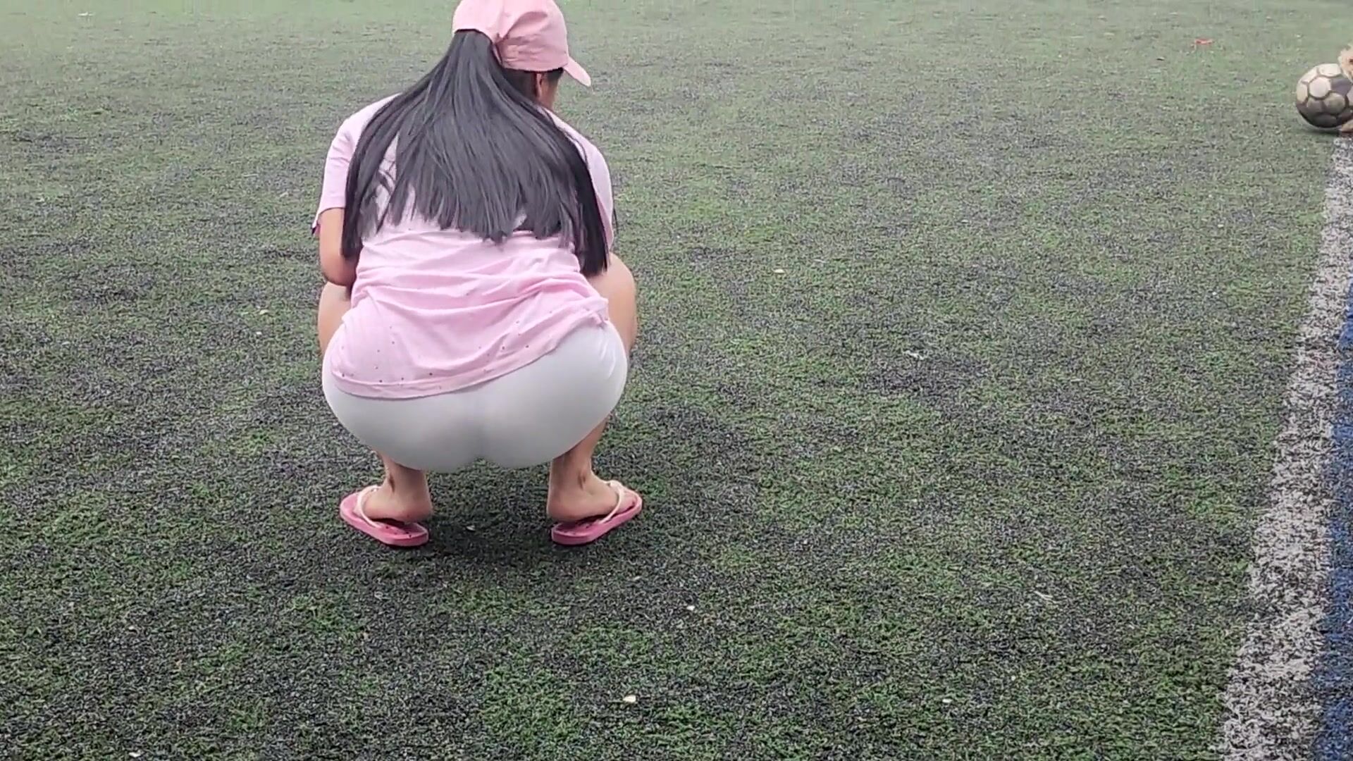 girl poops soccer yoga shorts