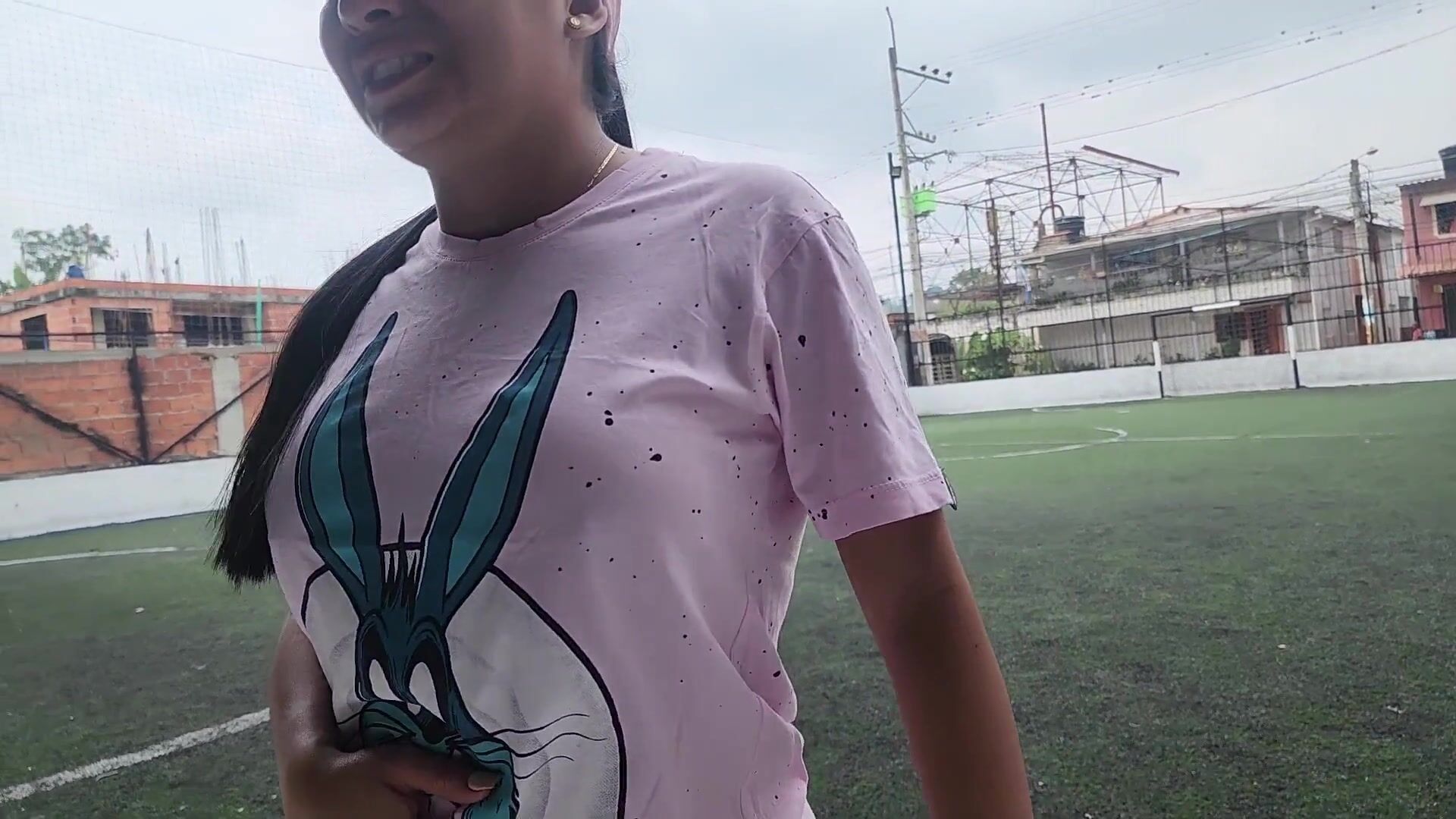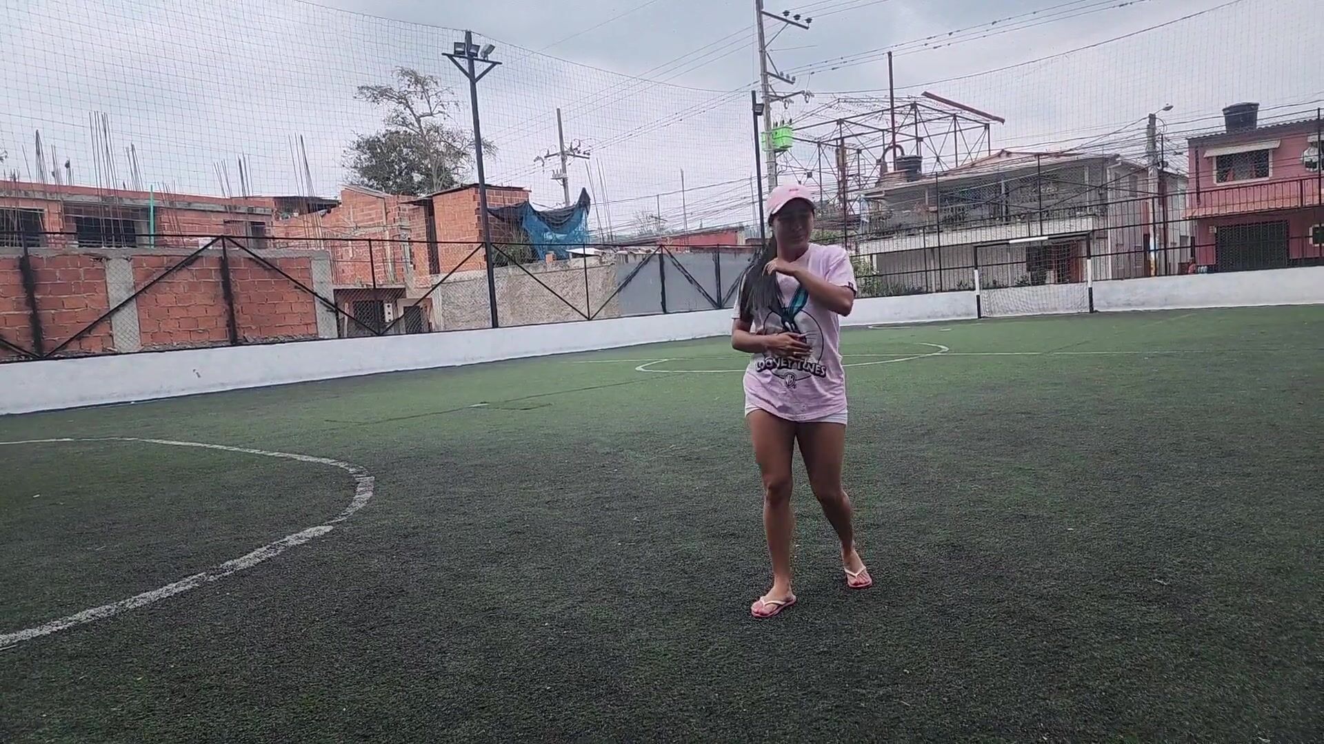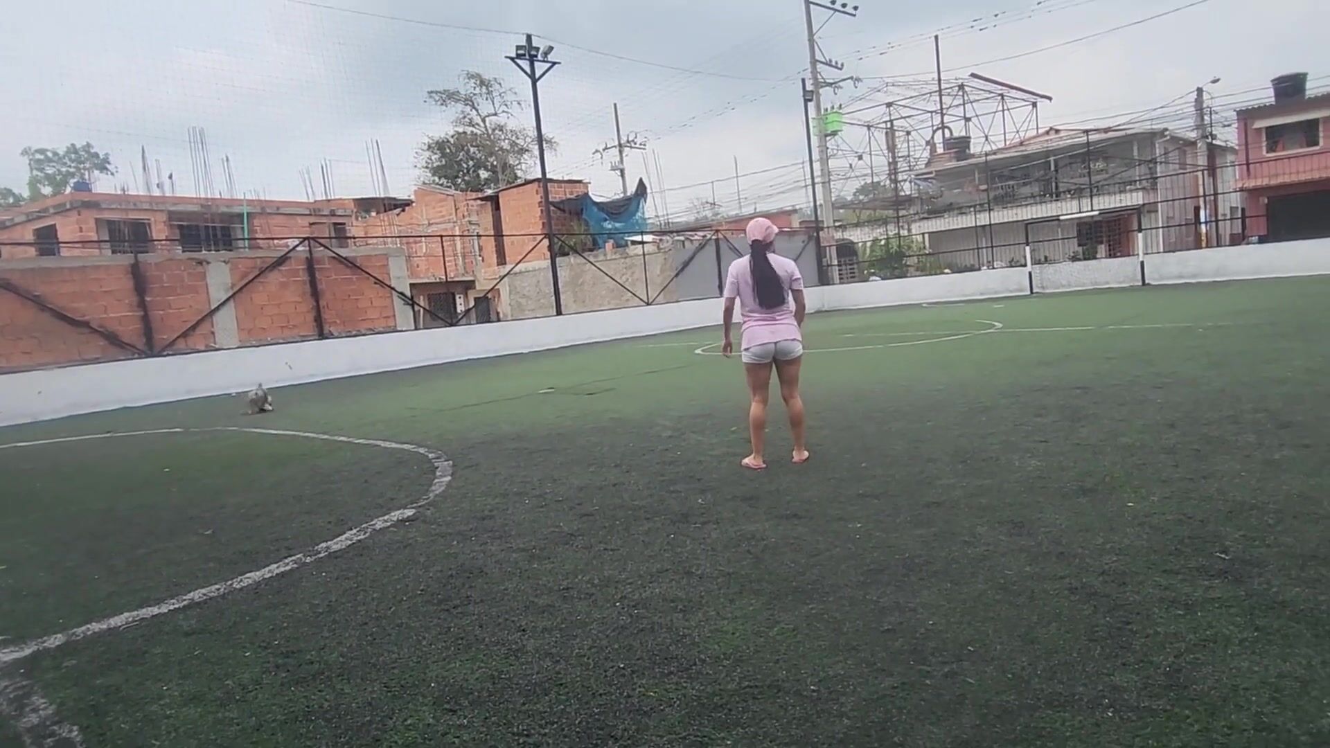 girl poops soccer yoga shorts