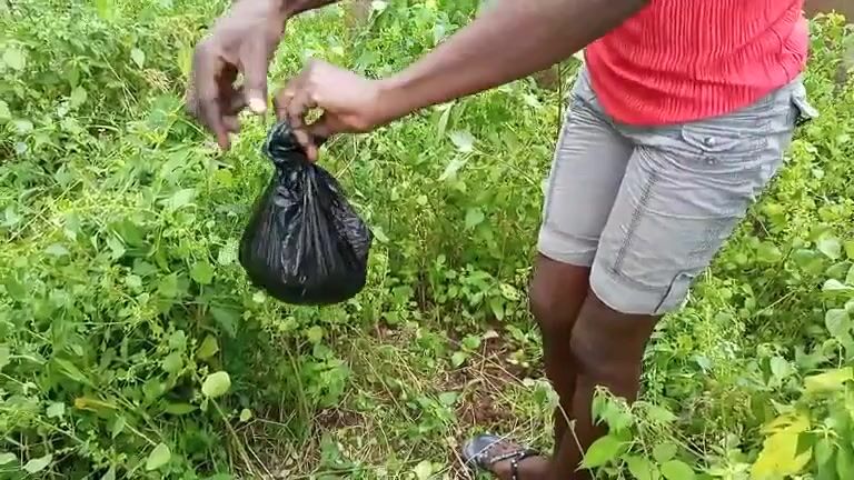 African lady pooping in the jungle..