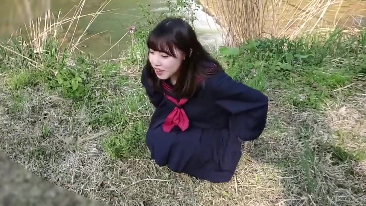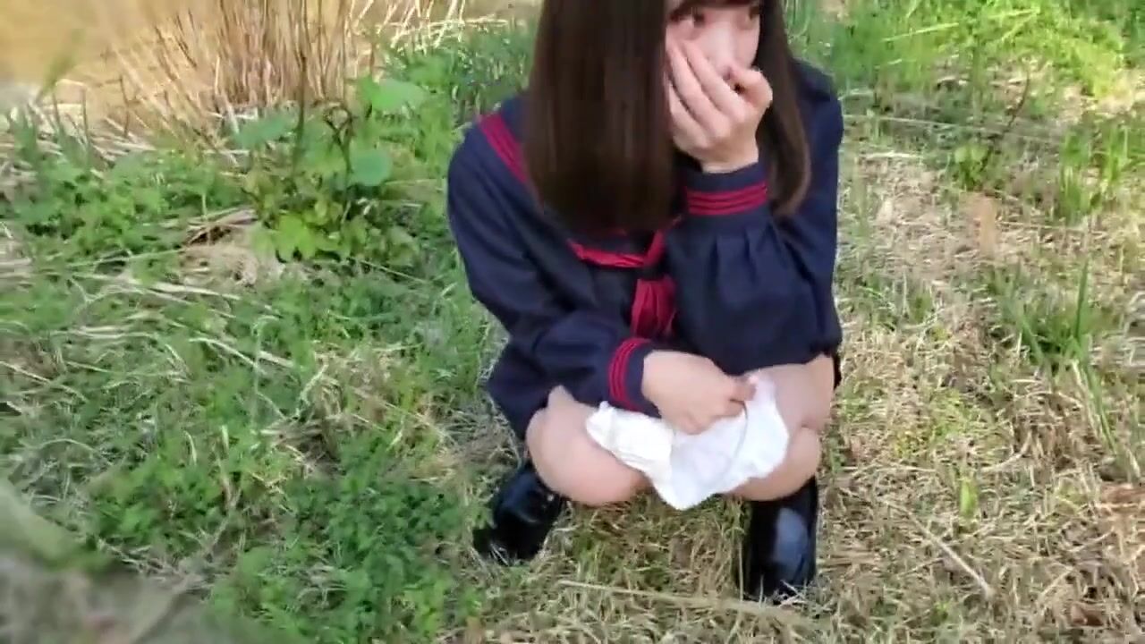 Shy Asian girl pisses for her boyfriend outdoors