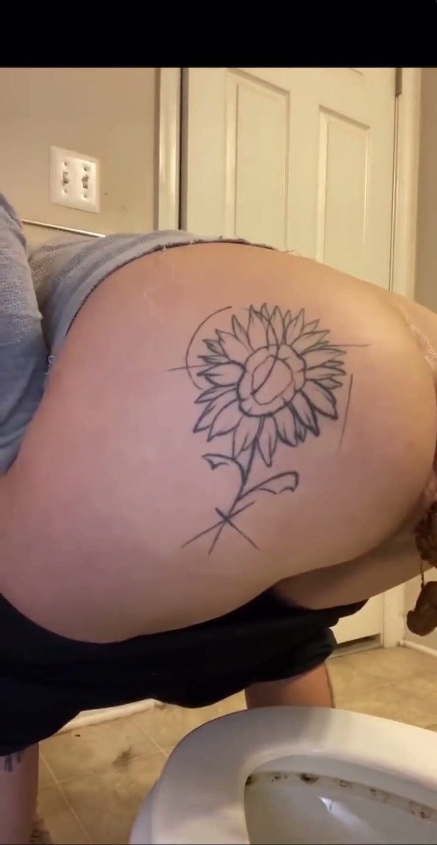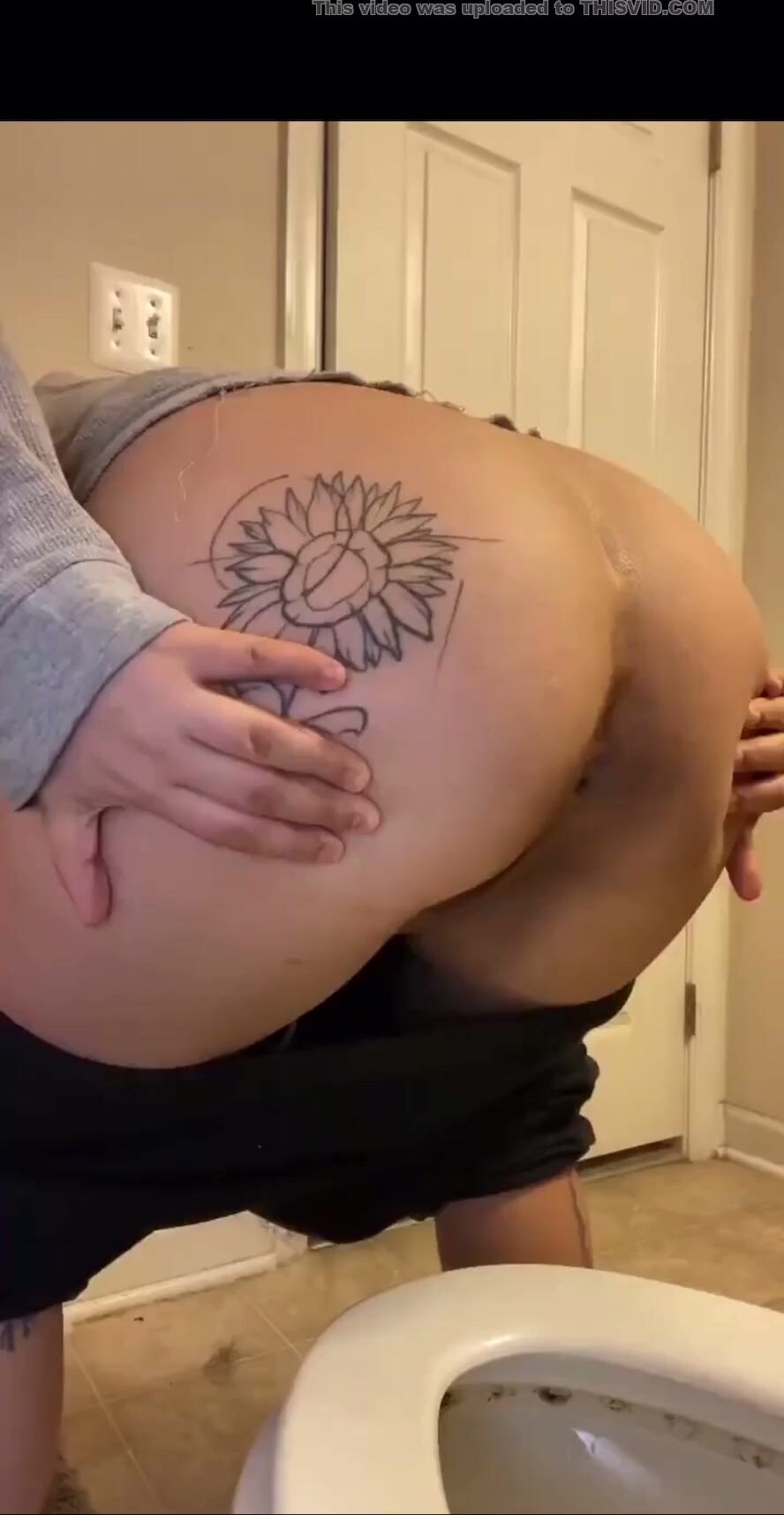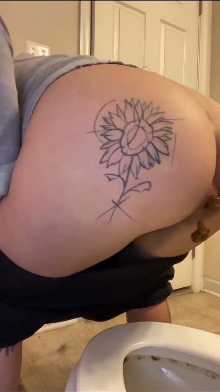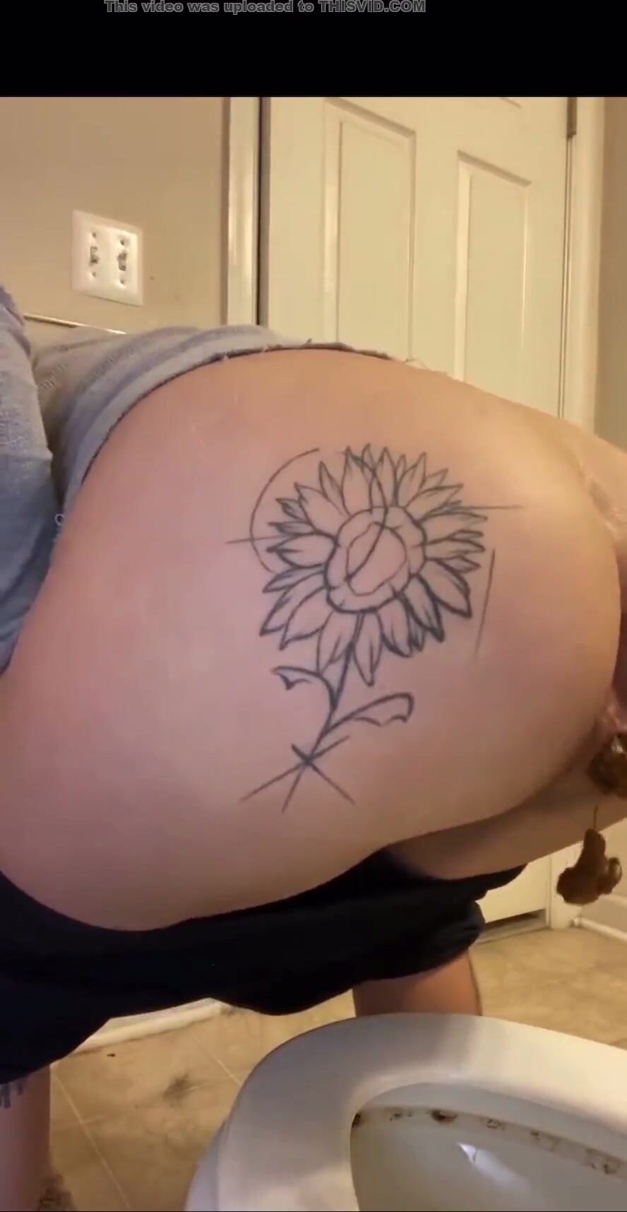 Ebony squats on toilet seat and shit