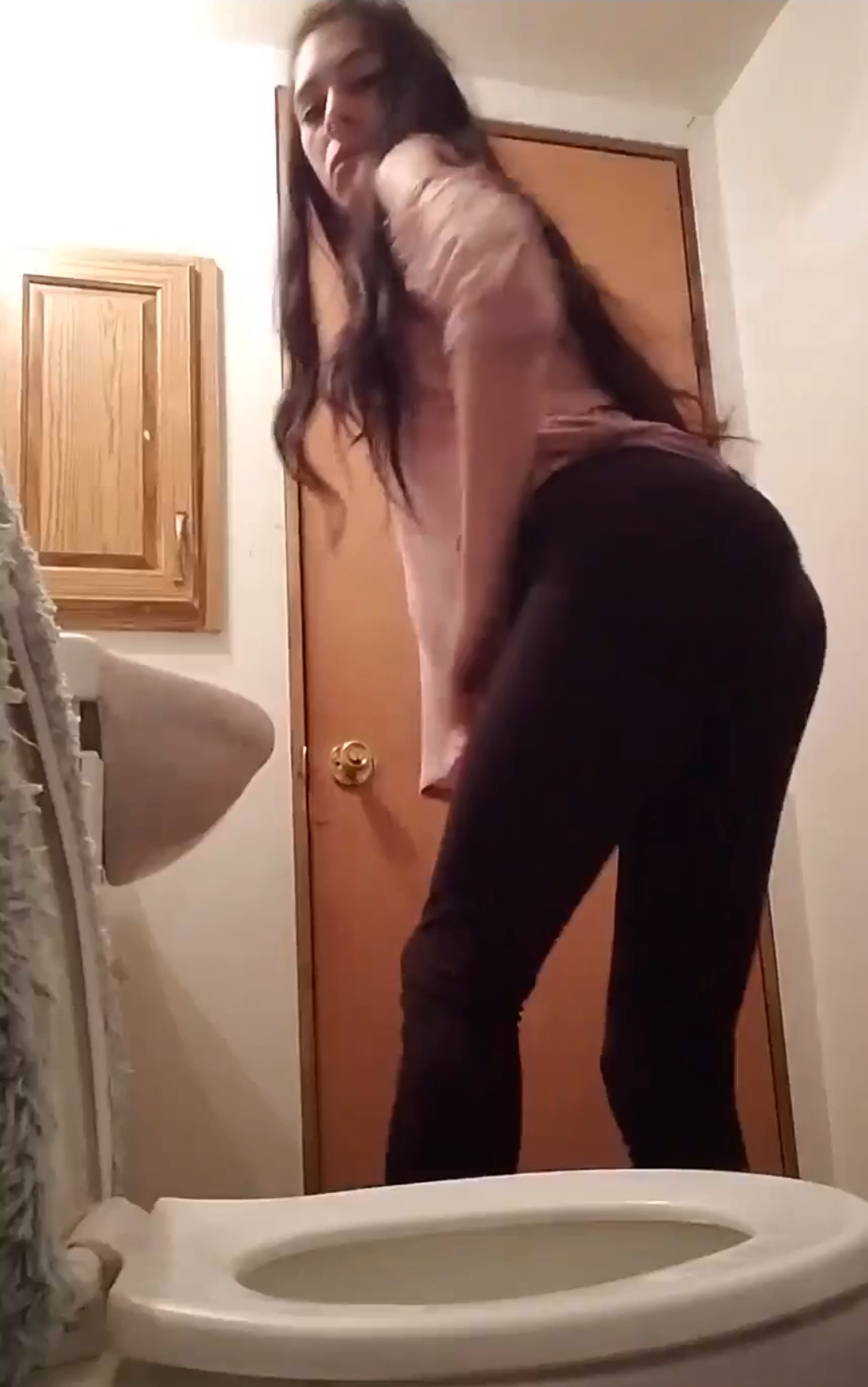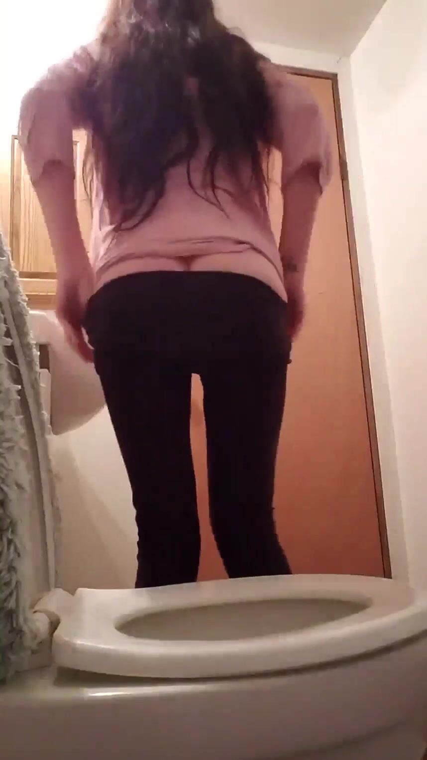 Skinny teen poops in toilet