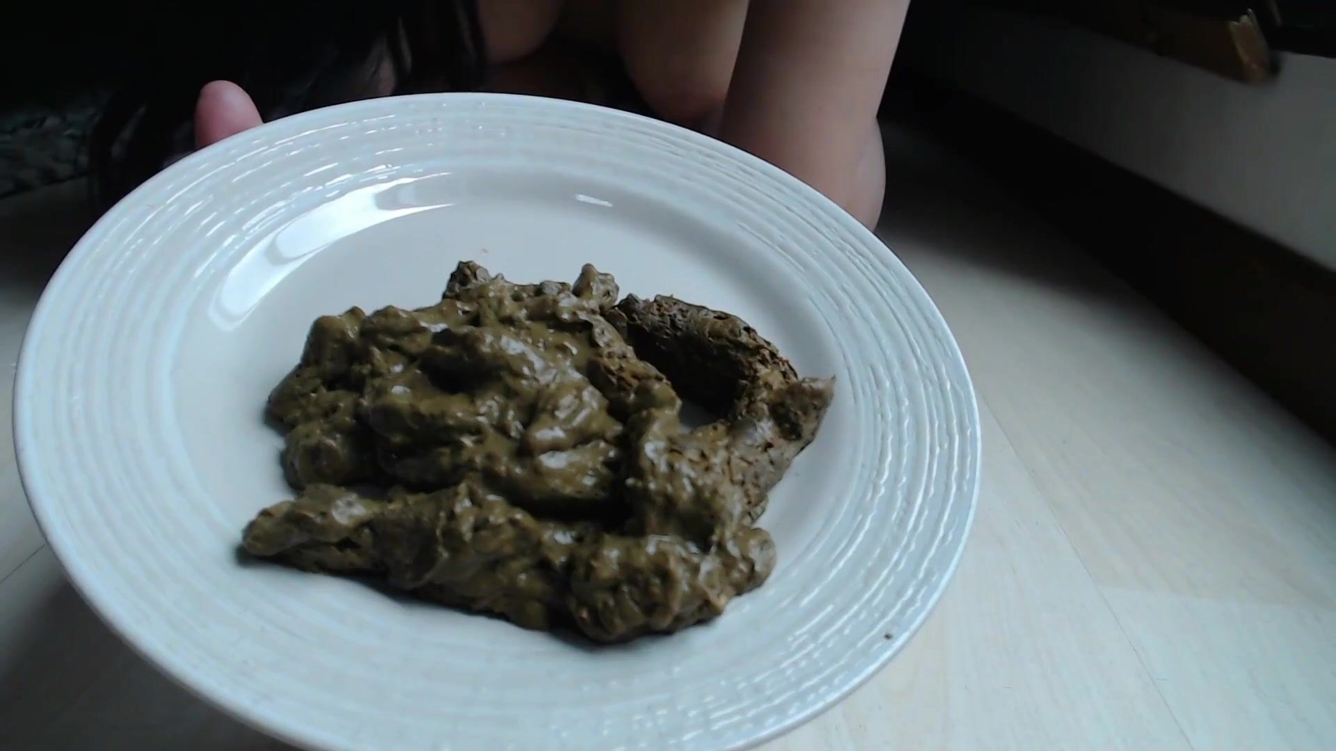 Latina cagando en un plato