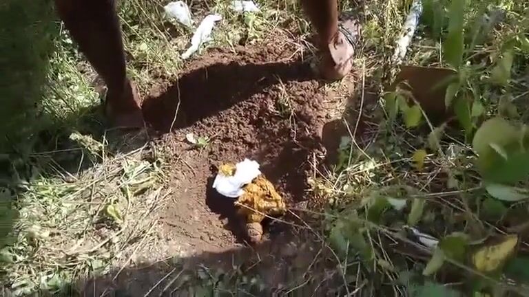 African lady carrying a poo to its grave..