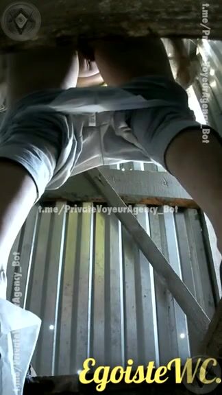 Scat voyeur in an outside toilet