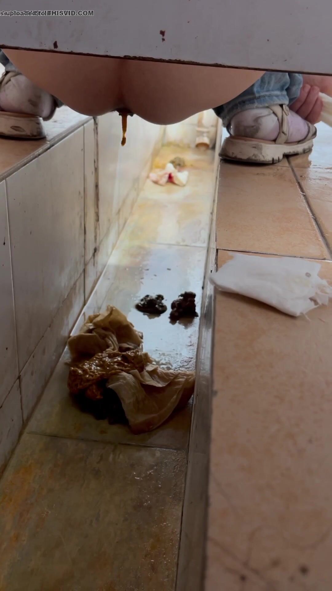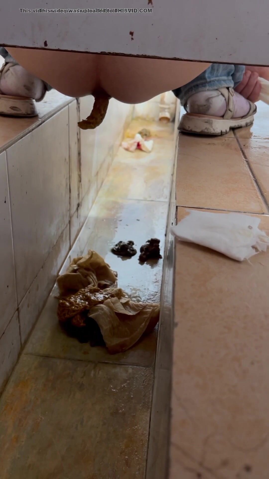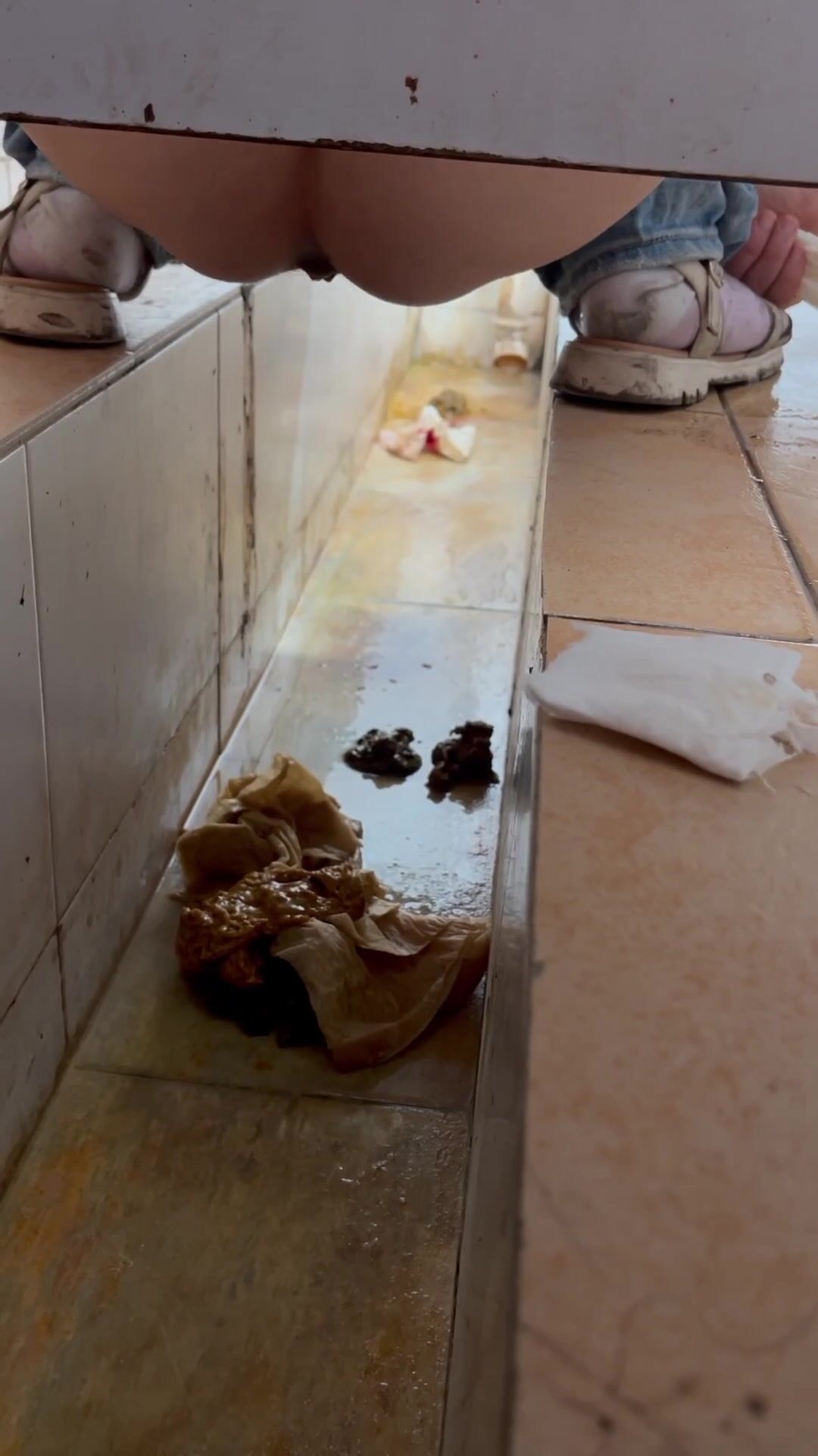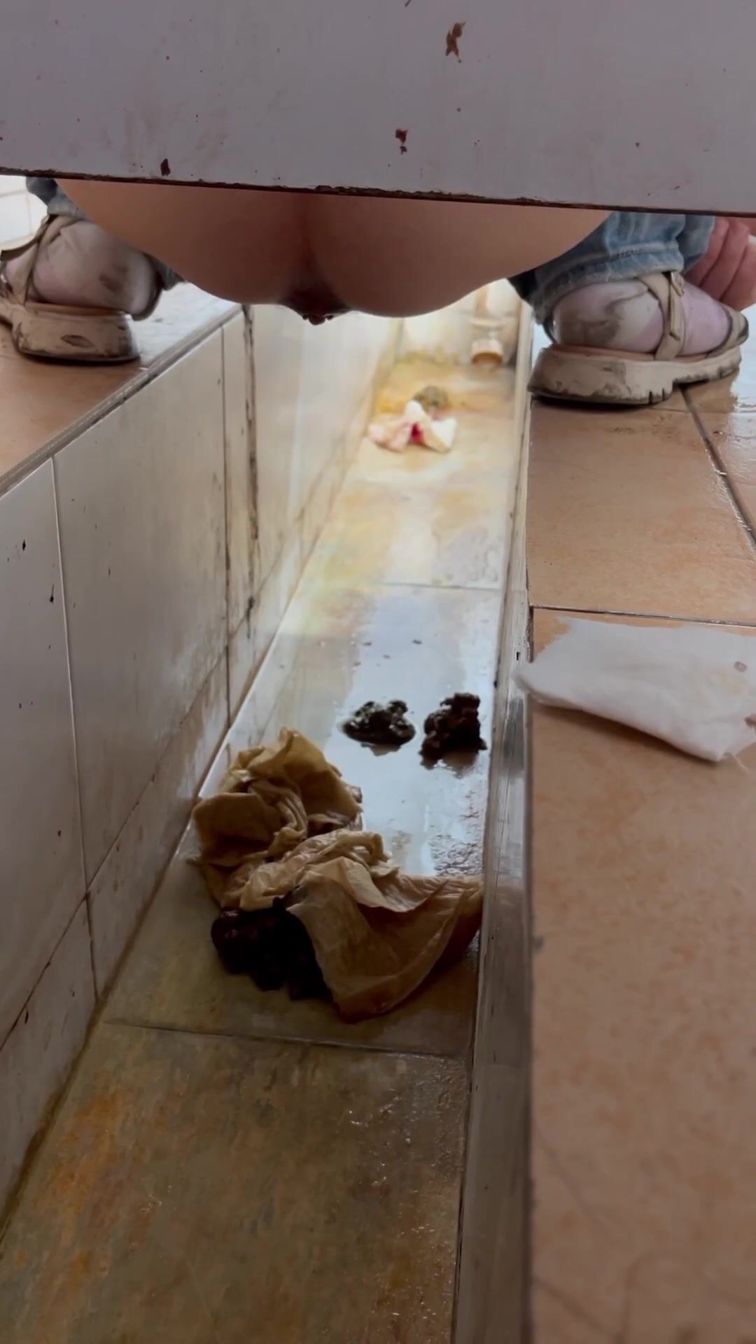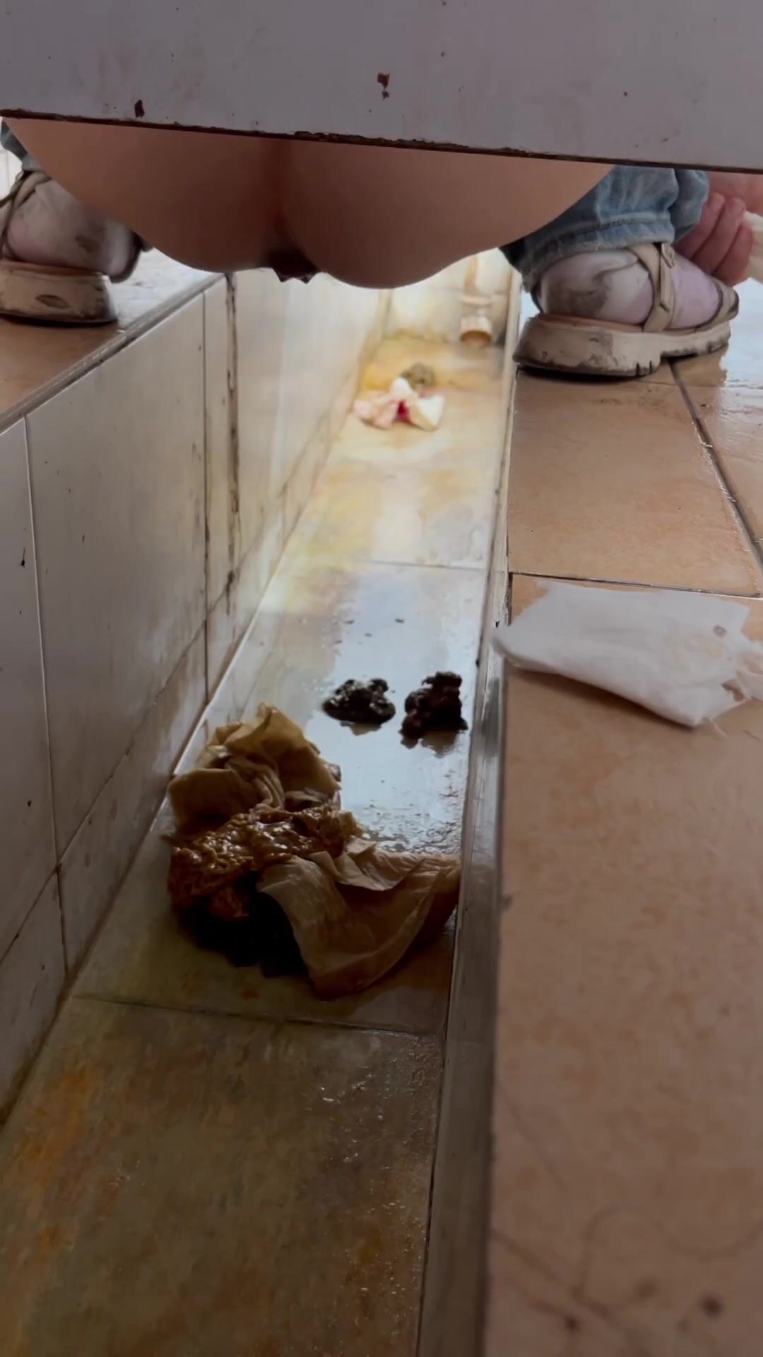 Chinese voyeur wet shit with gas in ditch