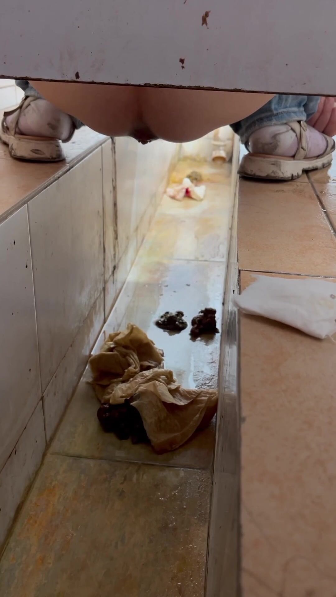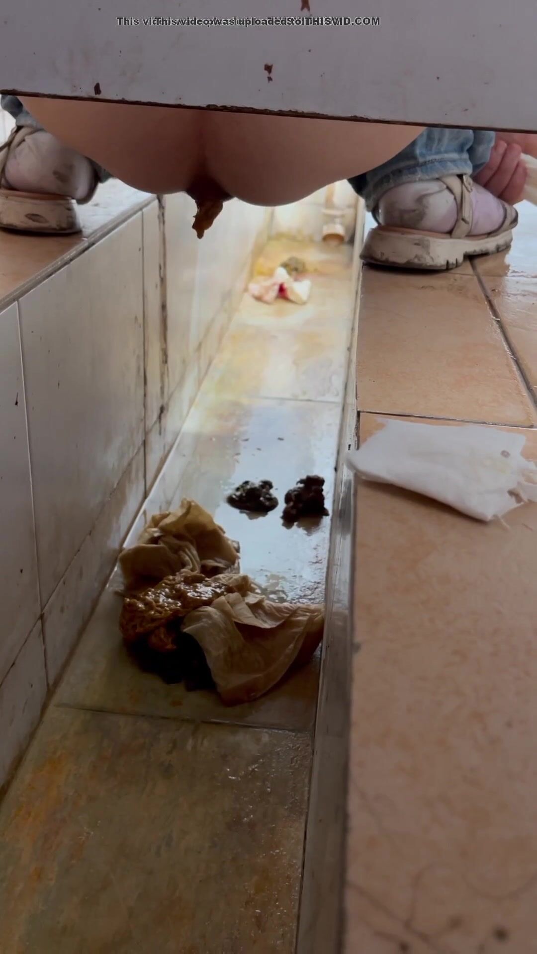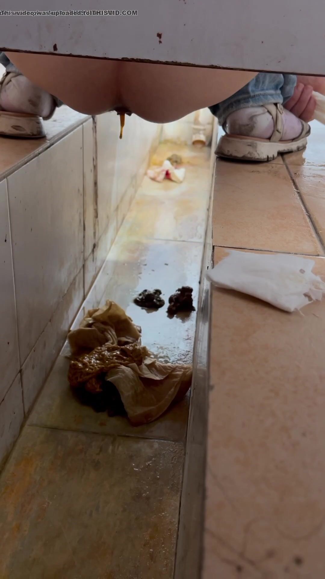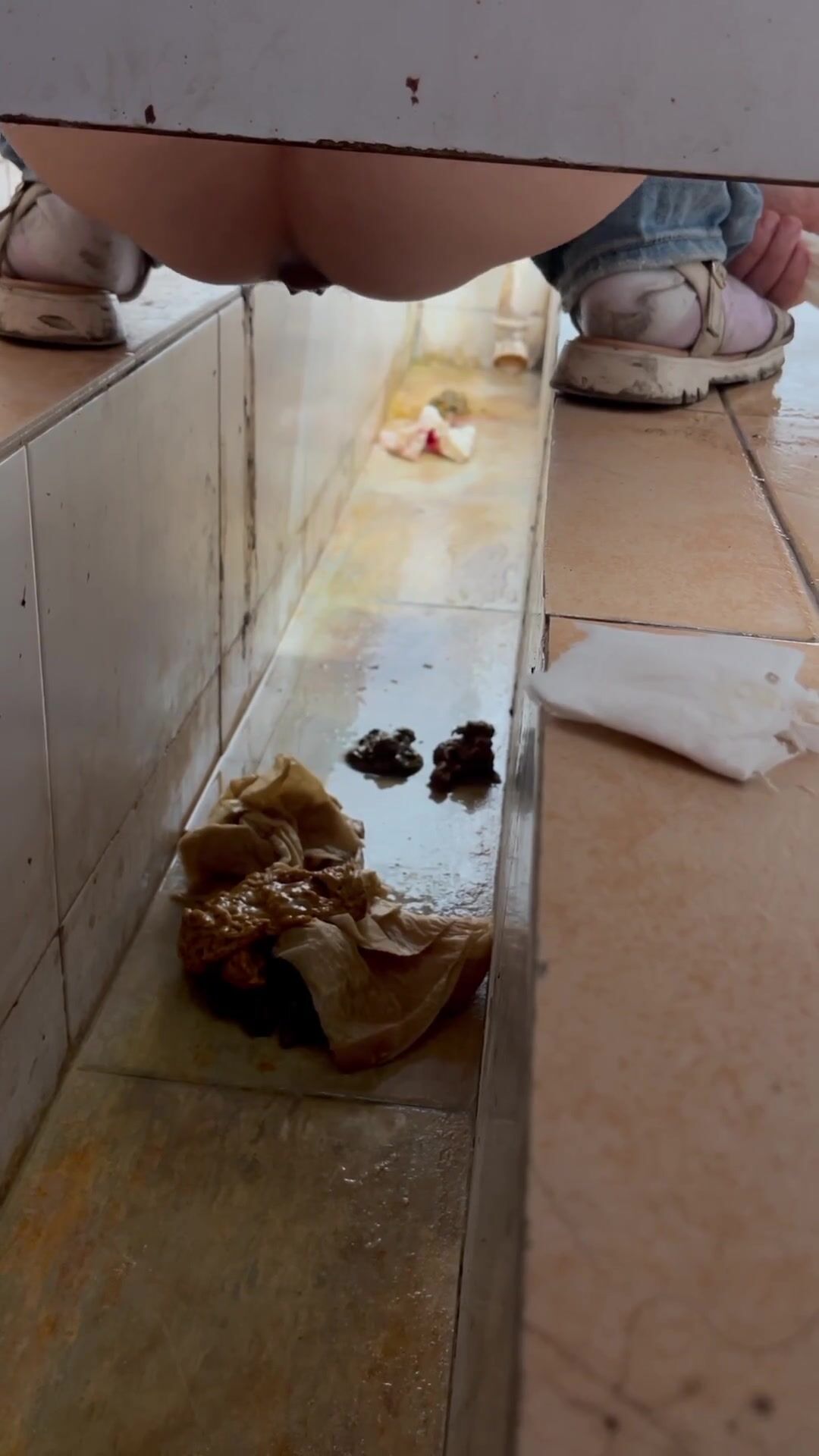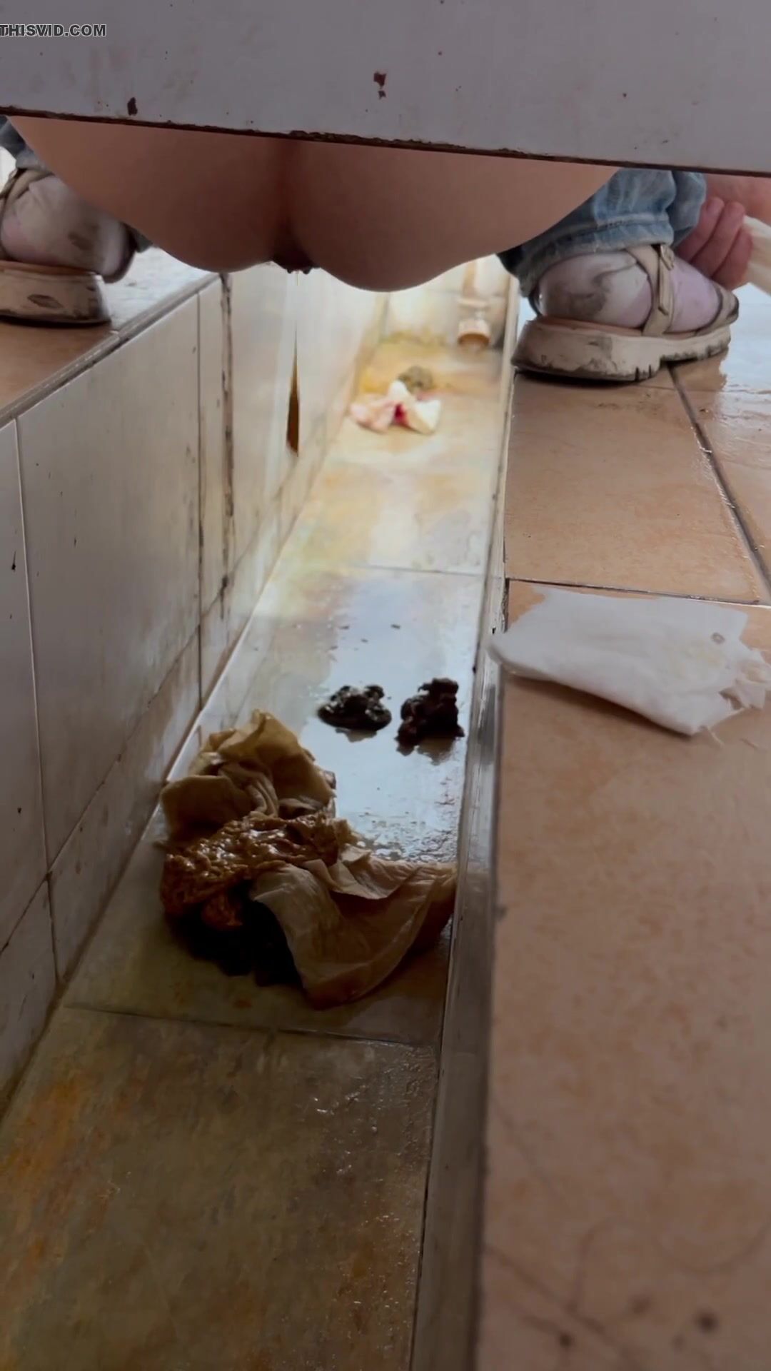 Chinese voyeur wet shit with gas in ditch