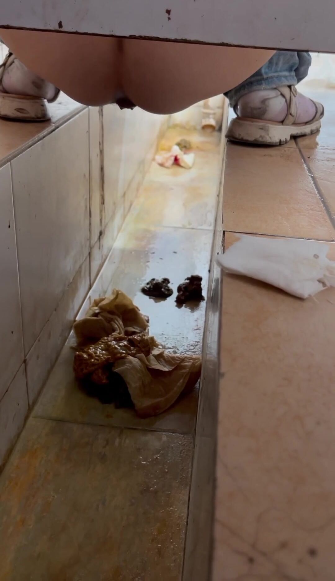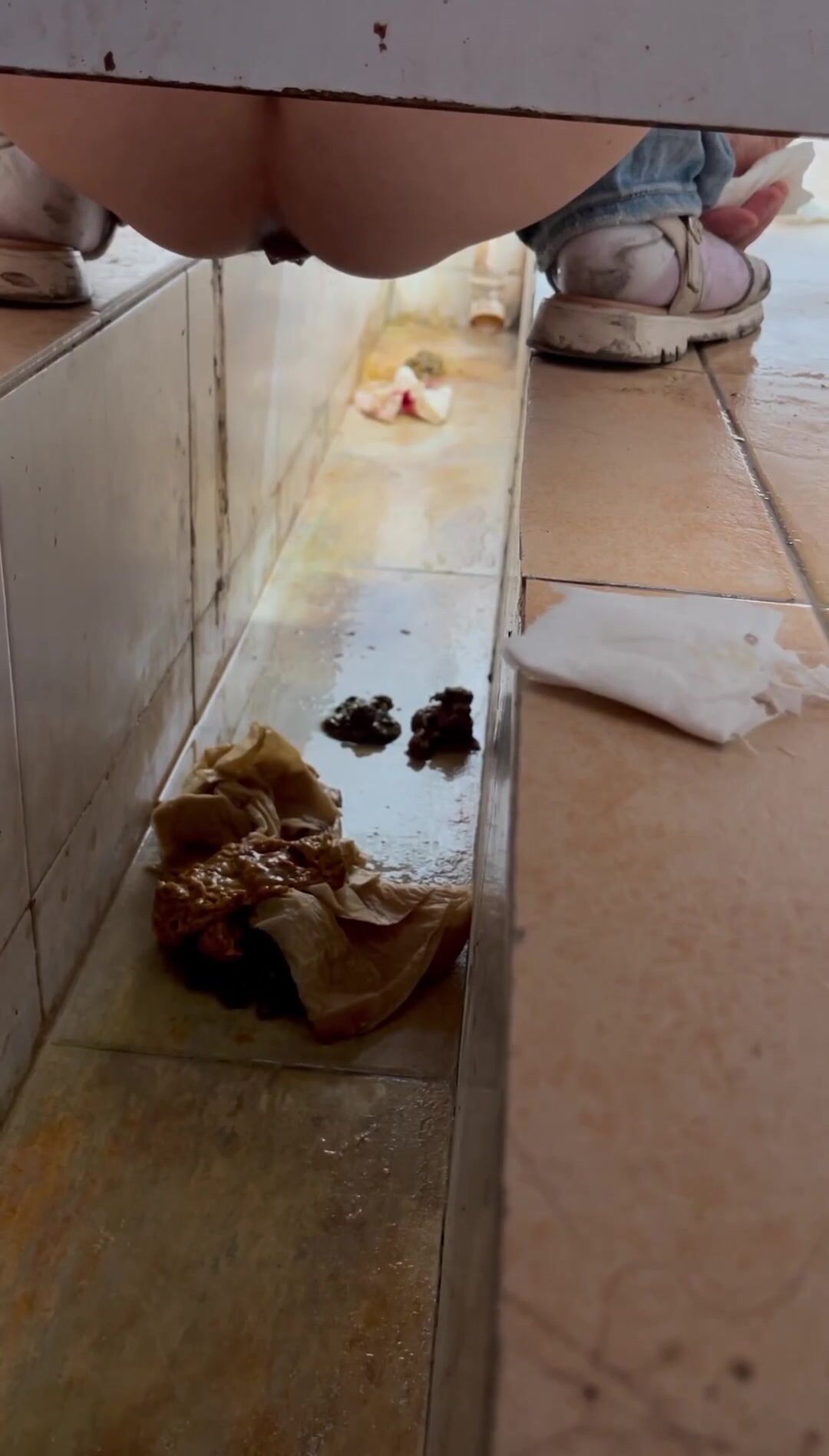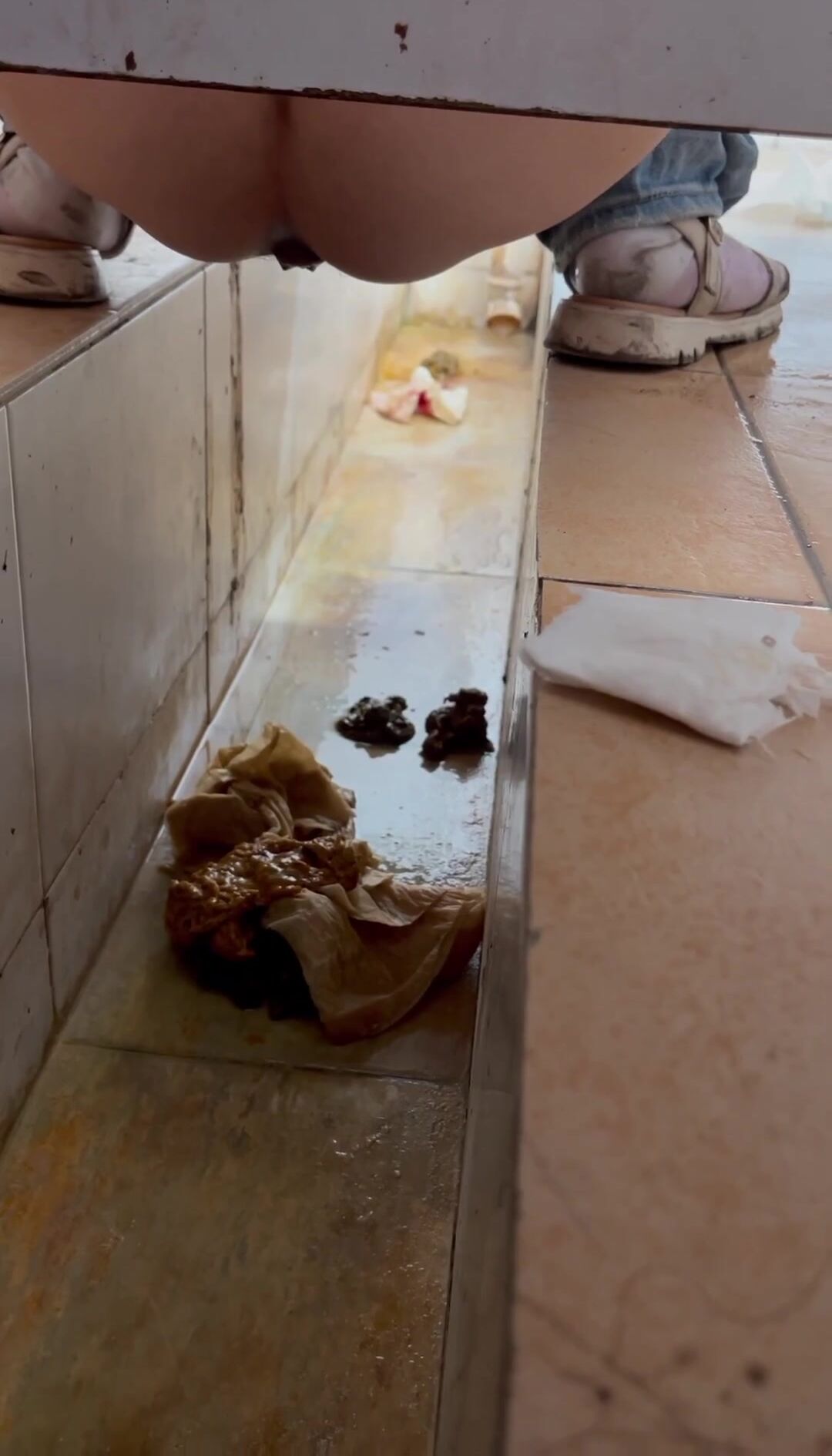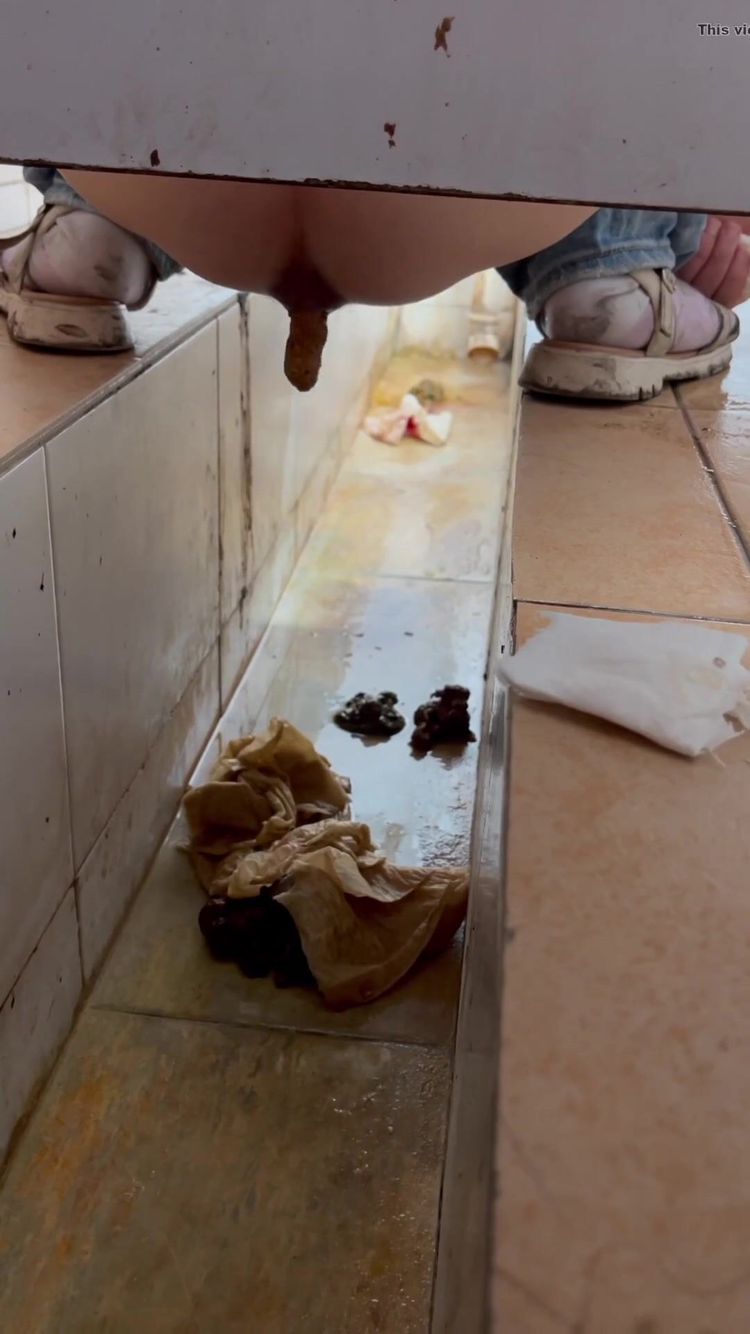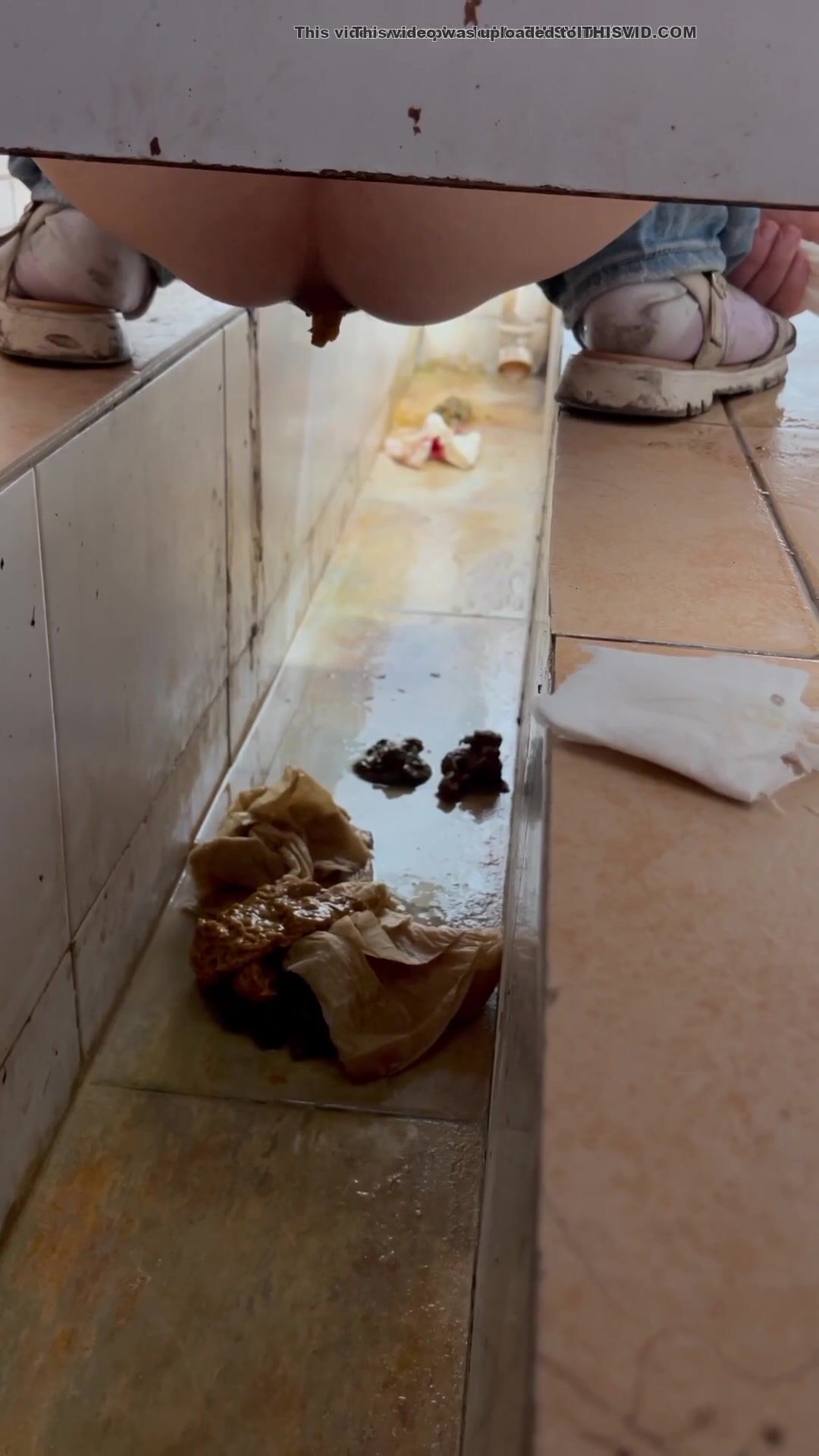 Chinese voyeur wet shit with gas in ditch
