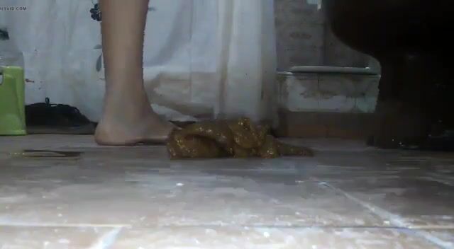 Girl open wide legs and shitting on the toilet floor