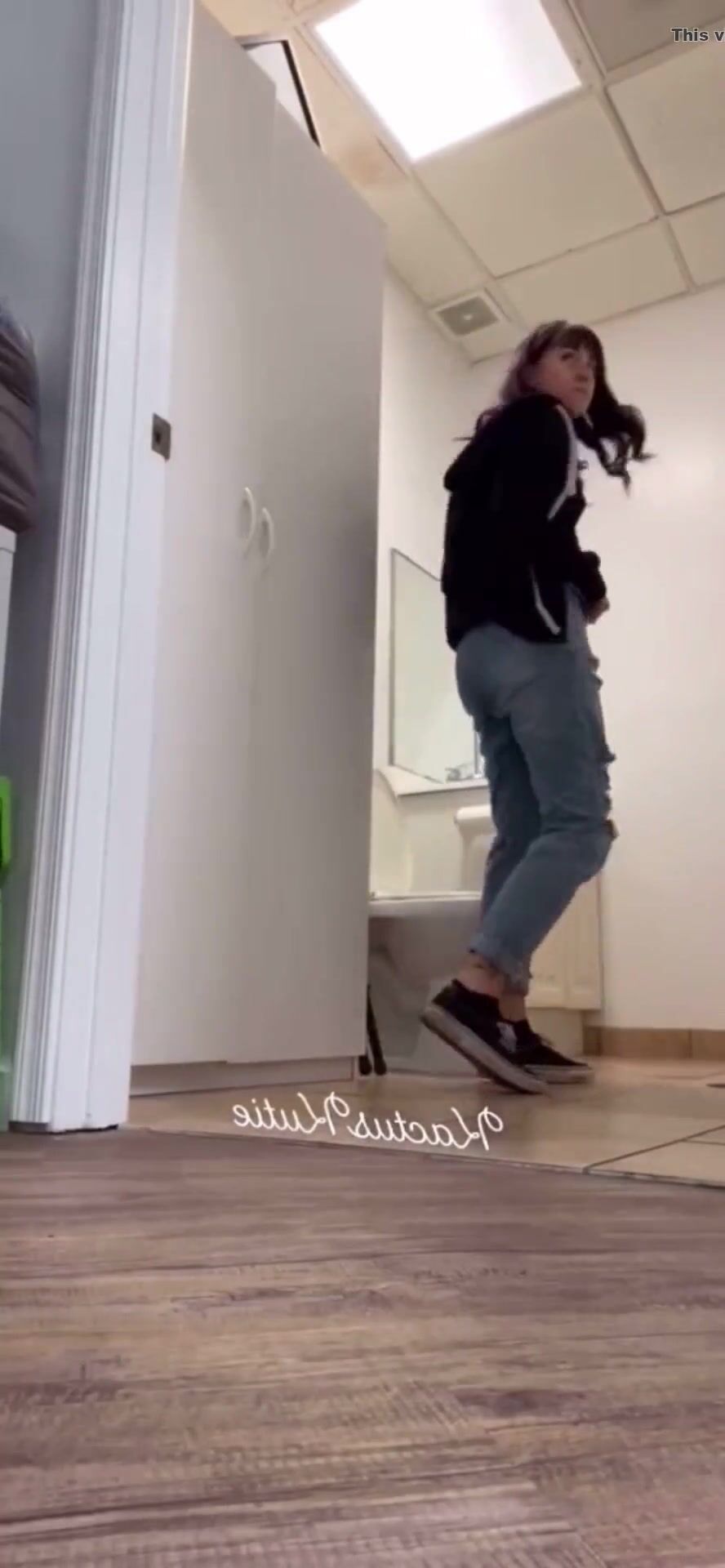 Girl open wide legs and shitting on the toilet floor