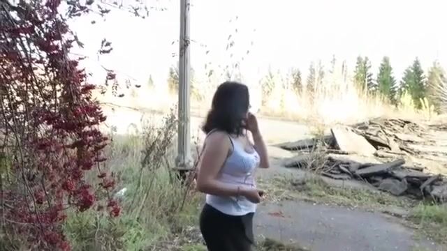 A Russian lady relieves herself outdoors..