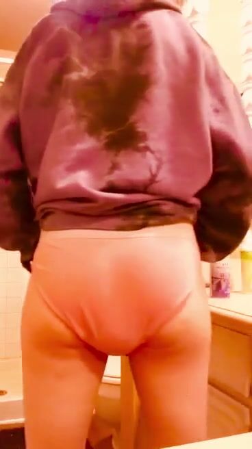 Sexy Teen takes huge messy shit in panties