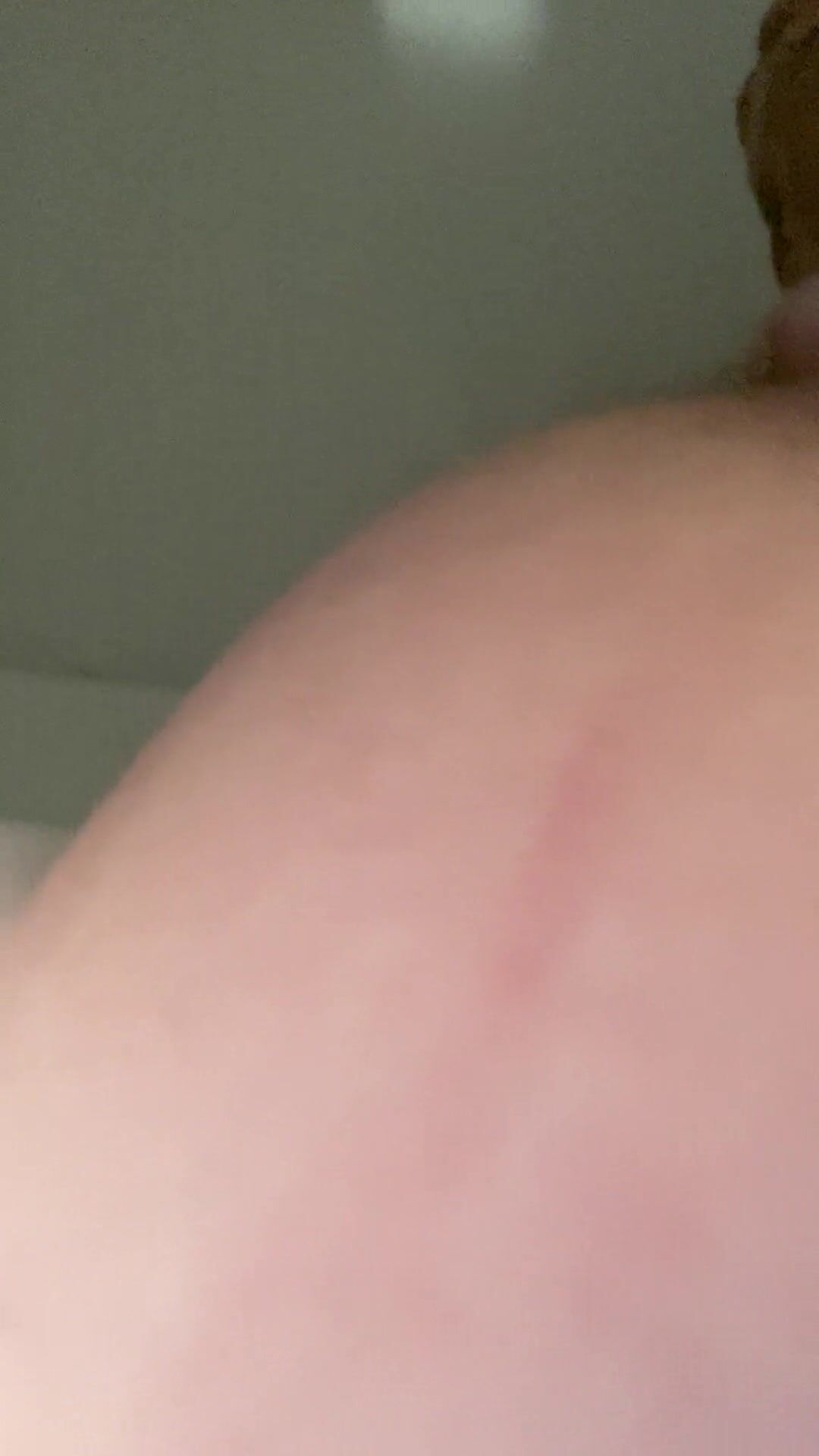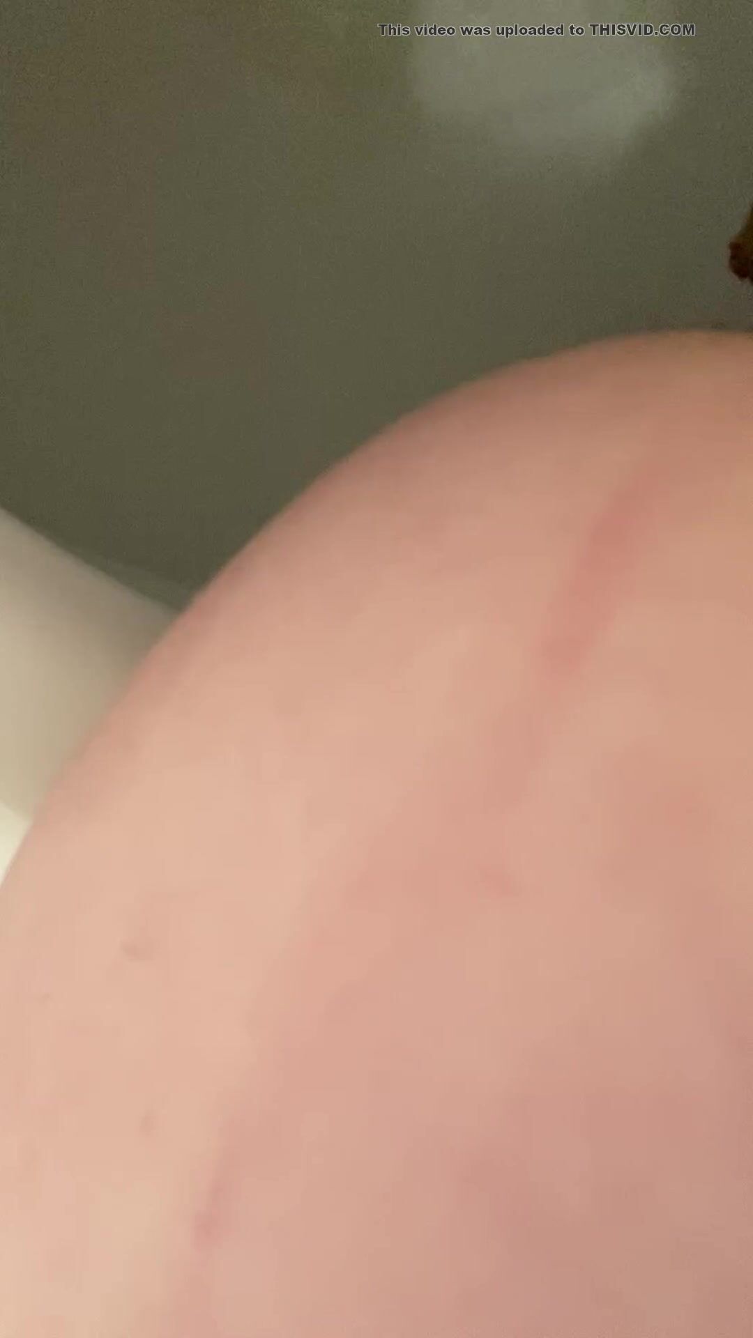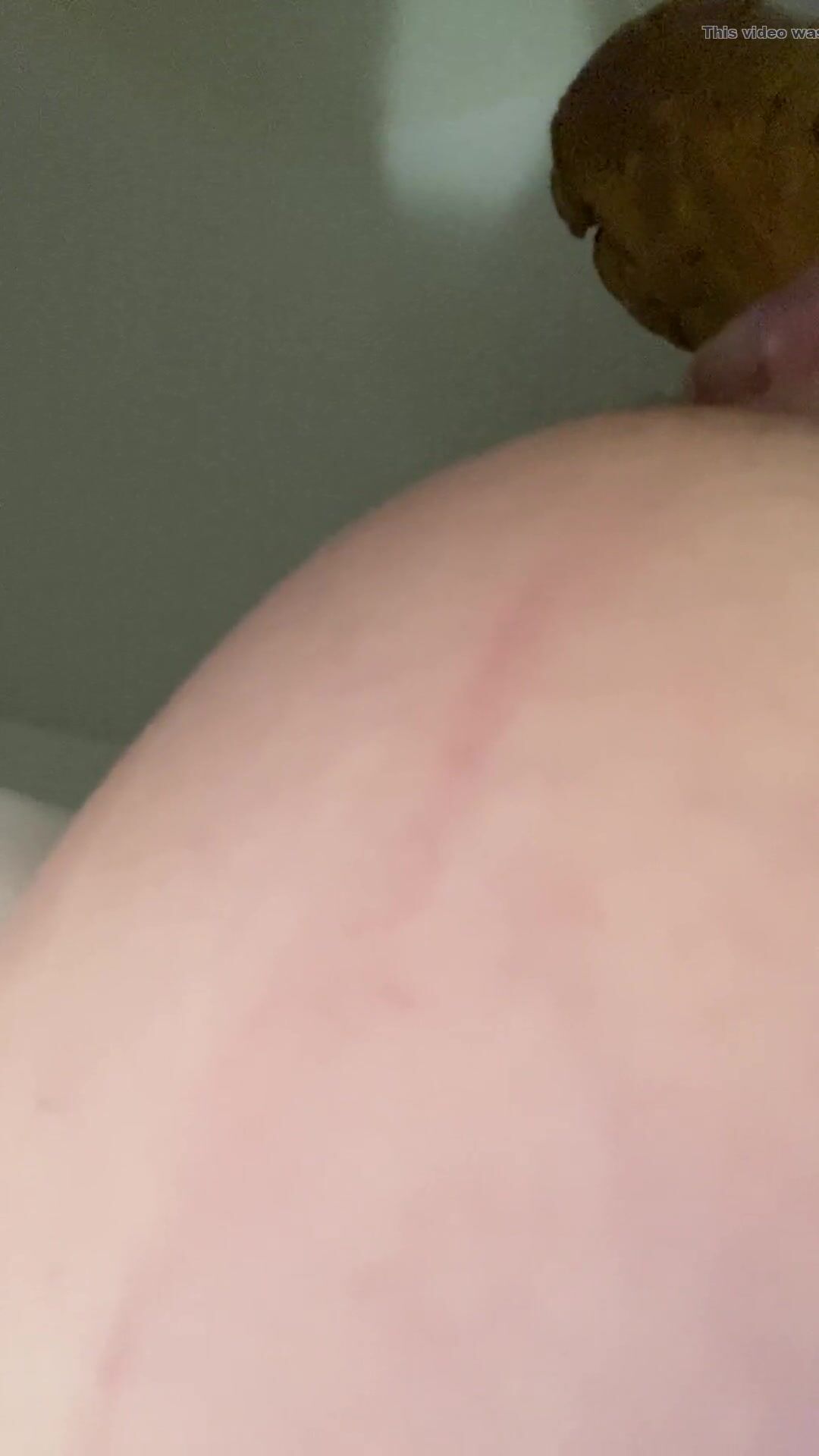 Woman on her side births huge turd.