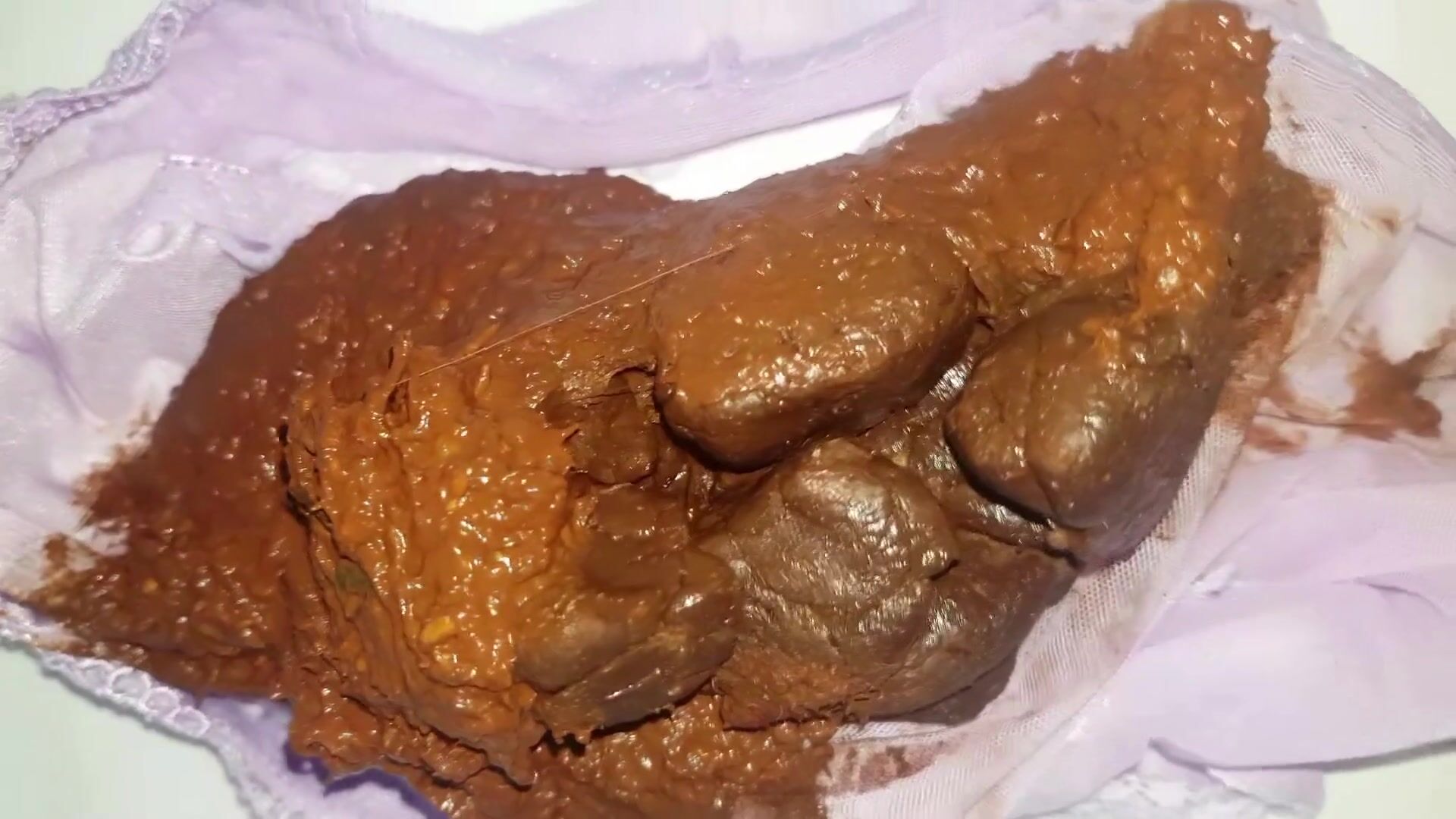 Two big poops in sheer pink panties