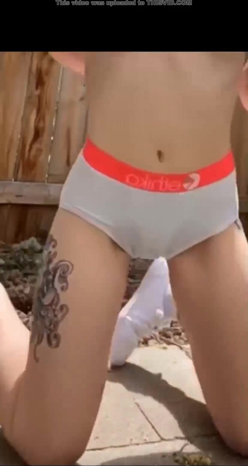 Chick messing panties in the back yard